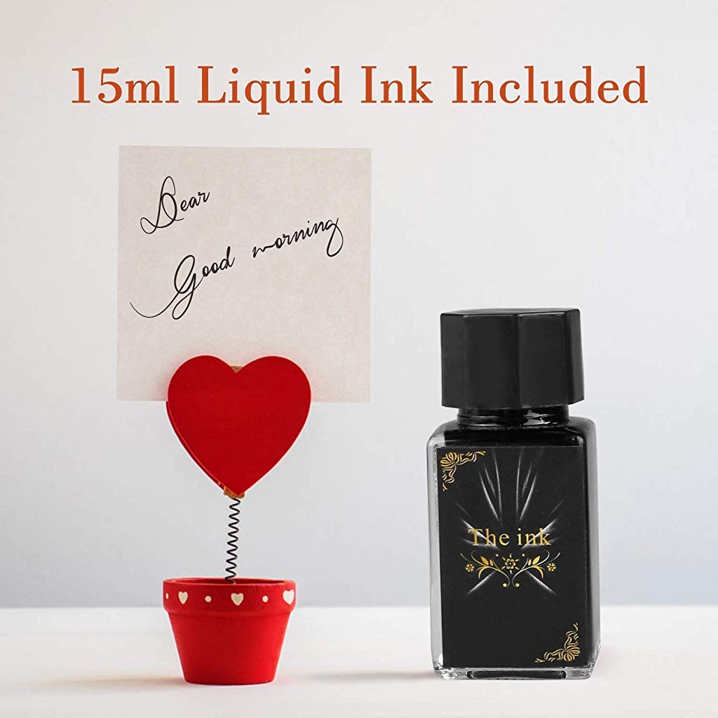 - Complete Set - This antique pen set includes a high-grade feather ink pen (with a pen nib), replaceable nibs, liquid feather pen ink, pen nib base, metal fittings. The perfect feather pen meets your different needs and brings you different life experiences.