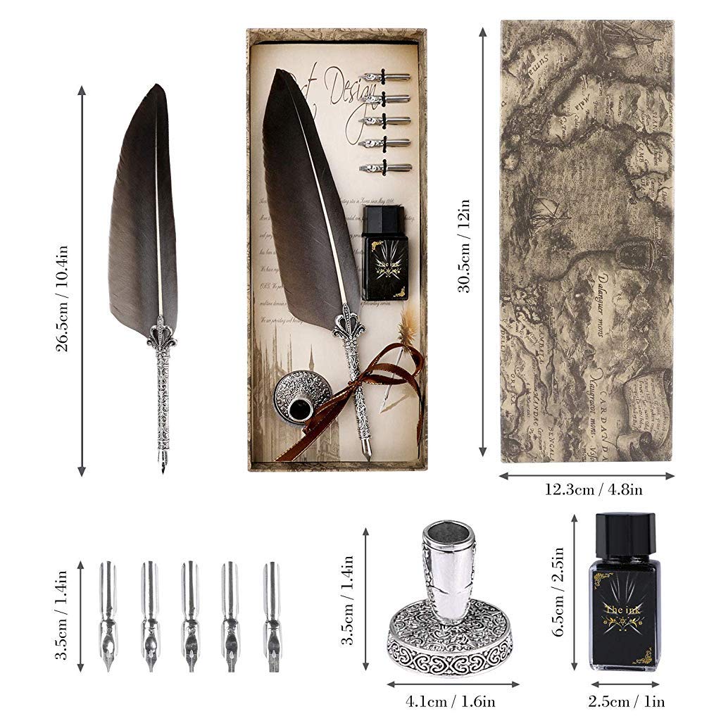 - Best Gift - Exquisite design, antique style, every feather quill pen?s fabulous beauty of arts contains the hard work of a craftsman. This calligraphy feather pen is a decent high-grade and meaningful gift for your family and friends in Christmas, Thanksgiving Day, birthday and so on.