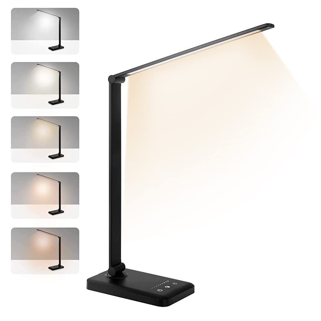 Verilux 5-Color Study Lamp Desk Lamp offers adjustable LED lighting from 2700K to 6200K for comfortable study and work environments. This USB dimmable table lamp features flicker-free, eye-friendly illumination with five selectable color temperatures, helping reduce eye strain during long reading or working sessions. Made of durable aluminum alloy, it includes a foldable and rotatable lamp tube for flexible lighting angles. The touch button control allows easy adjustment of brightness and color settings, while the 30-minute and 60-minute timing options add convenience for daily use. Designed for students, professionals, and home offices, Verilux delivers reliable lighting performance that supports healthy and efficient studying or working.