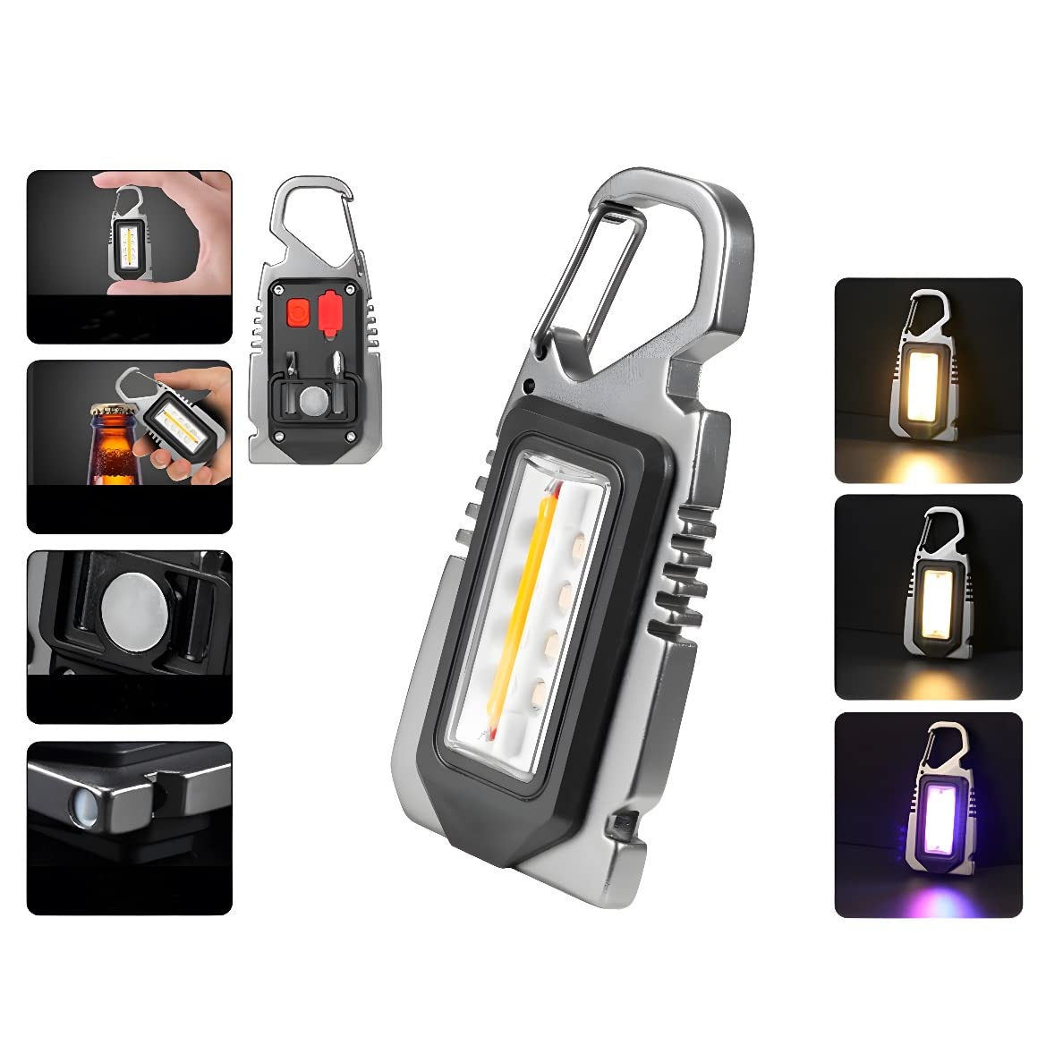 ELEPHANTBOAT 4 in 1 USB Rechargeable Keychain LED Flashlight delivers compact illumination and multifunctional convenience for outdoor, emergency, and daily use. Made from durable aluminum alloy with a sturdy, waterproof design, it withstands wear and ensures long-lasting performance. Equipped with COB light beads, this mini flashlight offers up to 1000 lumens of yellow light, two brightness settings, and a red-blue warning mode for enhanced visibility and safety. The integrated magnet allows hands-free use on metal surfaces, while built-in screwdrivers, a whistle, and a bottle opener expand its usability. Powered by a rechargeable 800mAh battery, it ensures reliable lighting and practical utility that reflect ELEPHANTBOAT’s commitment to dependable everyday tools.