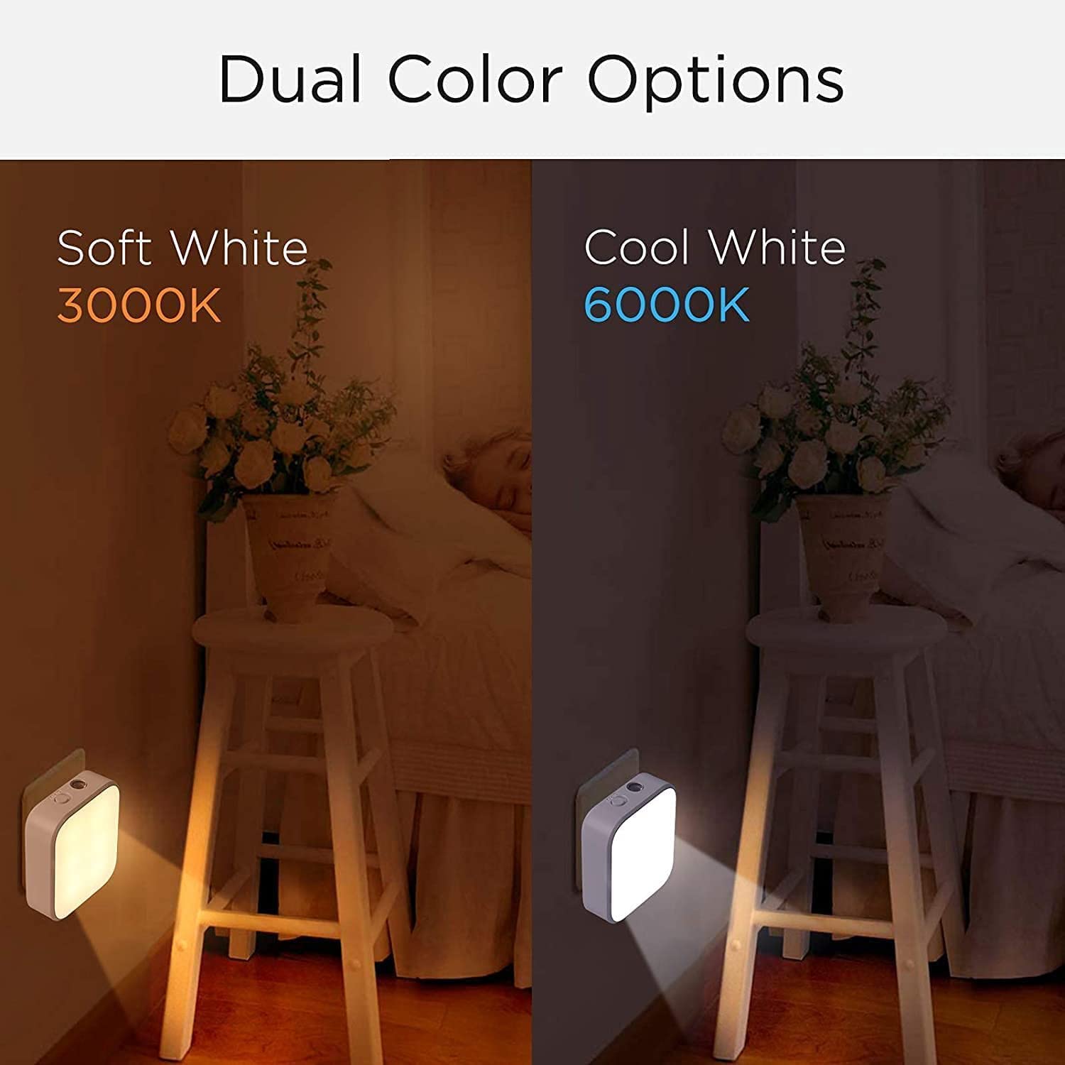 - ELEPHANTBOAT 4 Pcs of Switchable Night Lamp for Bedroom Plug and Play, Lighting Sensor Night Light Cabinet Light for Children/Kids Bedroom Hallway Stair Kitchen(Warm Light+ White Light) ELEPHANTBOAT 4 Pcs of Switchable Night Lamp for Bedroom Plug and Play, Lighting Sensor Night Light Cabinet Light for Children/Kids Bedroom Hallway Stair Kitchen(Warm Light+ White Light)