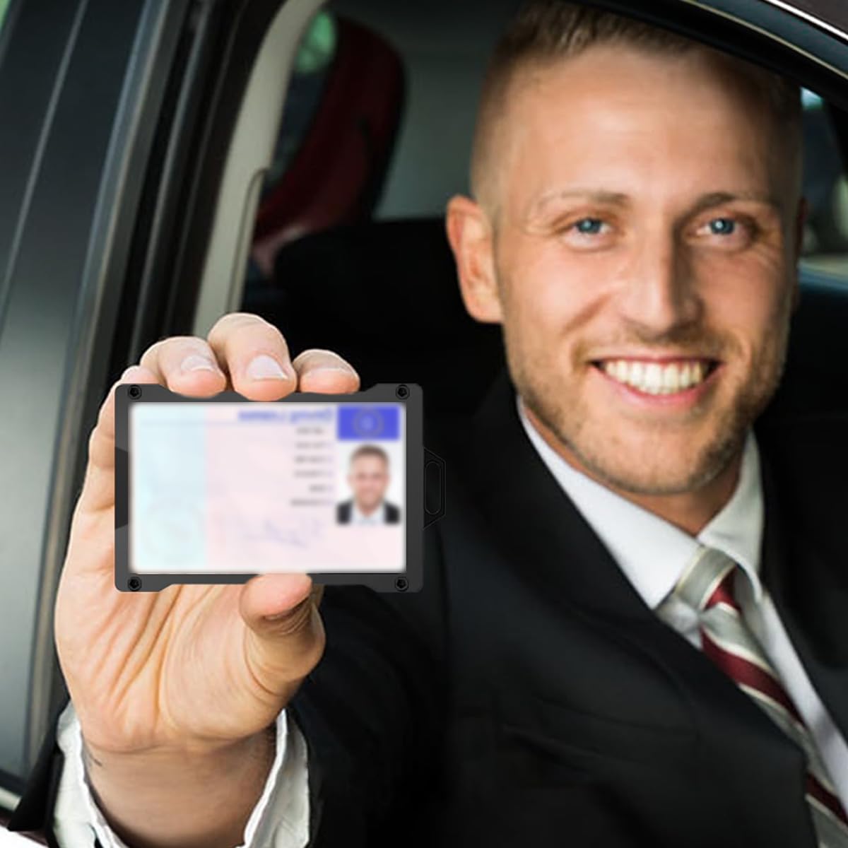 - PREMIUM ALUMINUM ALLOY CARD HOLDER: Crafted with premium aluminum alloy, sturdy and durable, fine craftement, longlast somfortable touch. Frame construction design can well hold and protect your cards from bending or degaussing. The metal loop provides a sturdy attachment on lanyard or clip.
