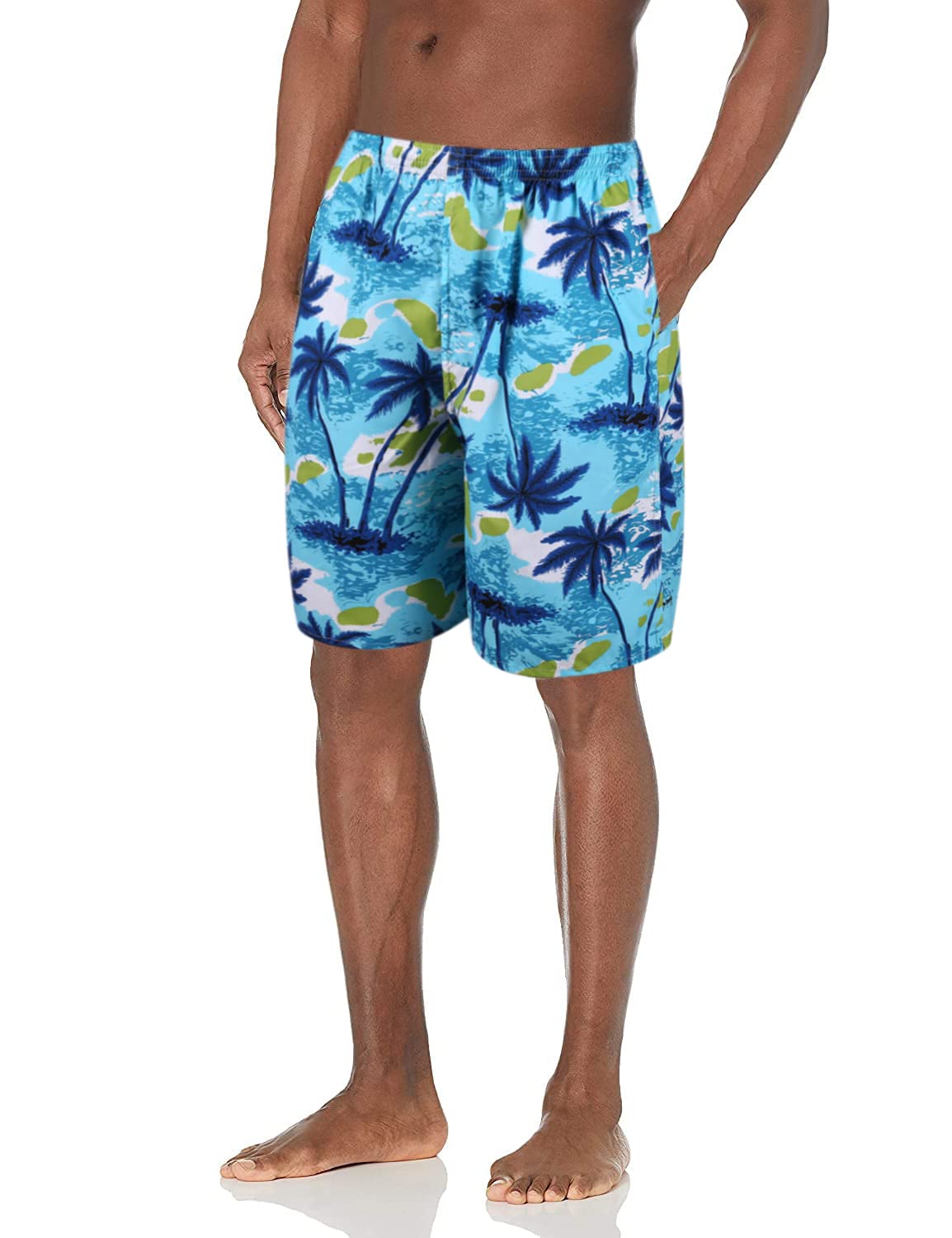 GUSTAVE® Swimming Trunk for Men features a blue coconut tree print design ideal for beach and pool use. Made from lightweight, abrasion-resistant polyester fabric, these trunks offer both comfort and breathability. The quick-dry material prevents discomfort from prolonged dampness and ensures a smooth feel against the skin. An elastic drawstring waist provides a flexible fit suitable for men weighing 50–65 kg, while two convenient side pockets allow easy storage of essentials such as keys or phones. Combining functional design with Hawaiian-inspired style, this GUSTAVE® swim trunk offers reliable comfort and versatility for swimming, beach sports, and resort leisure activities.