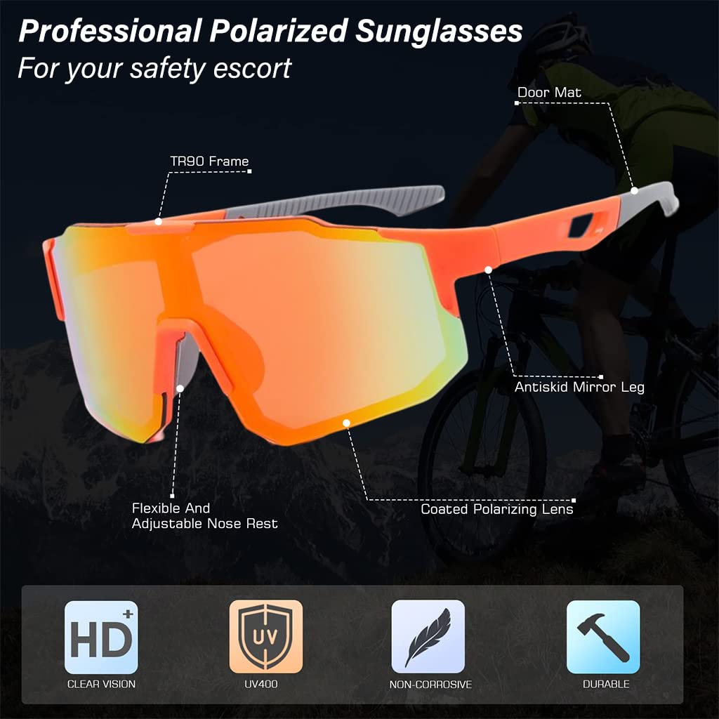 - UV 400 CYCLING SUNGLASSES: The polarized sunglasses for men, using the polarizer, which can block UV rays and filter light. And the lens can make sure the color of the surrounding environment without distortion, clear vision, the most important thing is that the lens will not make color distortion, suitable for driving and outdoor use.