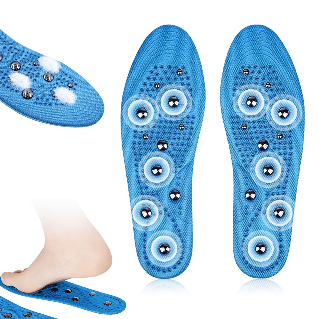 HANNEA Acupressure Shoe Insoles are breathable magnet nubs massager soles designed to stimulate blood circulation and relieve tension for both men and women. Crafted to target specific pressure points on the feet, these insoles deliver a gentle massaging effect that promotes relaxation and supports overall wellness. Made from durable and comfortable EVA material, they fit universally within EU sizes 41–46 and suit different types of footwear. The ergonomic structure provides daily therapeutic benefits, helping reduce fatigue and maintain comfort throughout extended wear. Ideal for active lifestyles, HANNEA offers a reliable, easy-to-maintain solution that enhances foot health and demonstrates trustworthy quality through thoughtful design and real functionality.