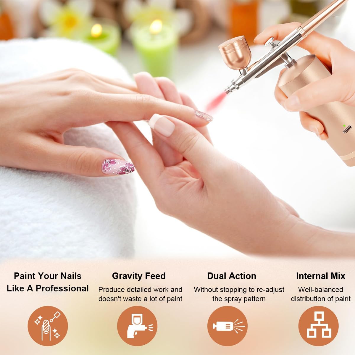 - AIRBRUSH KIT WITH COMPRESSOR: With a rechargeable battery that provides over 60 minutes of continuous usage, just simply charge it with the USB socket using a power bank, laptop, or any USB charger (Type-C). Features an indicator light on the cordless airbrush body to show the battery power, this portable airbrush allows you to unleash your artistic skills anywhere you go. Note: Please ensure to use a 5V/1A or 5V/2A adapter to avoid damaging the battery.
