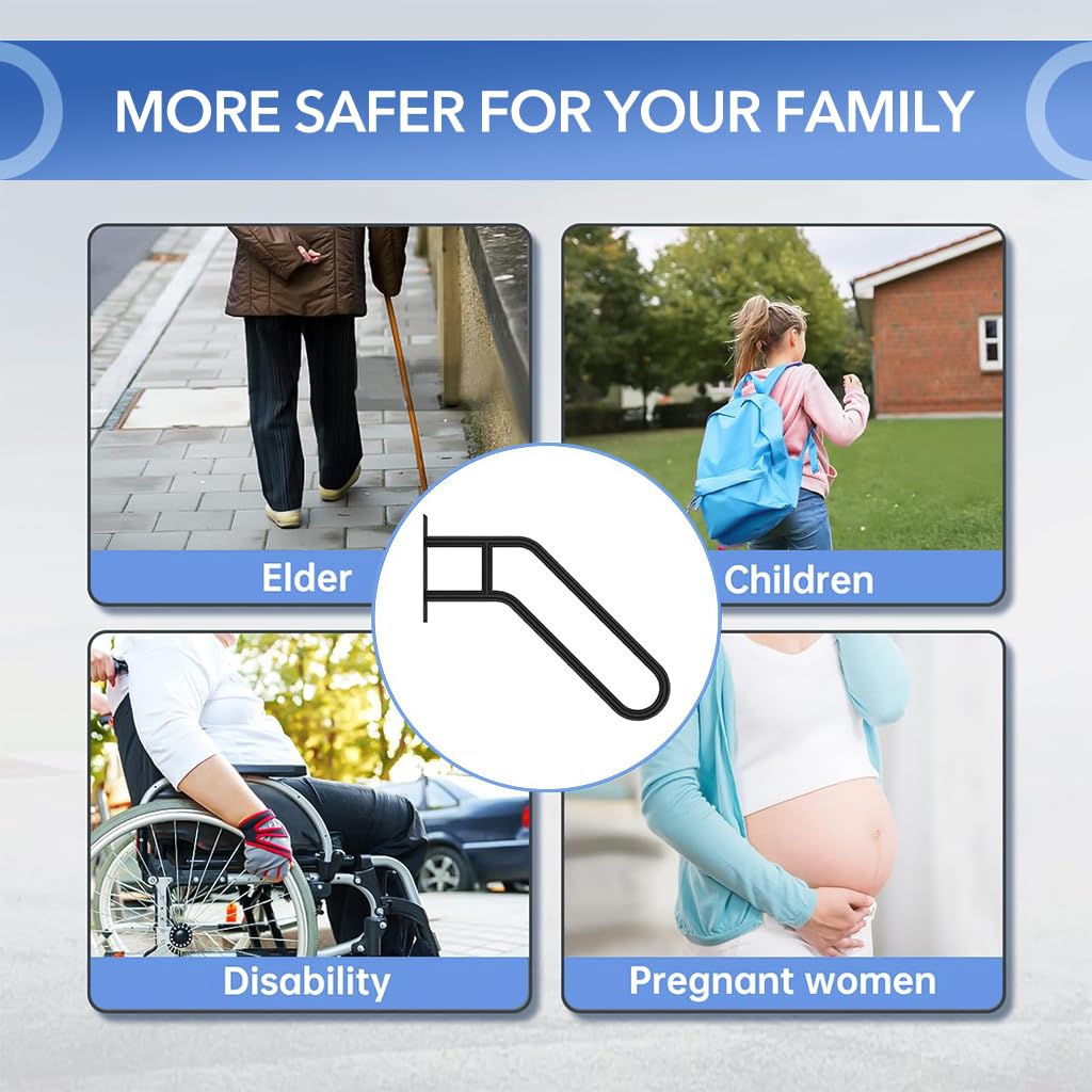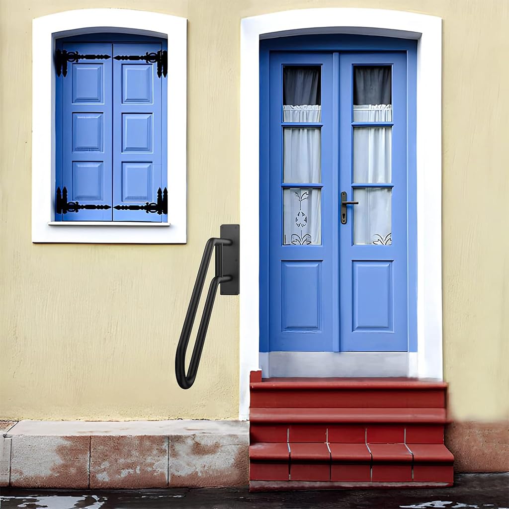 - INDOOR & OUTDOOR USE: The U-shaped safety steps handrail can be installed on outdoor steps and indoor stairs for garage railing, front door/porches, residential building, commercial office building, hotel, bathroom, gardens, balcony, yards, higher patios or through entrances, etc.(extra security for the elderly, children, pregnant, disabled family members, and people after surgery)