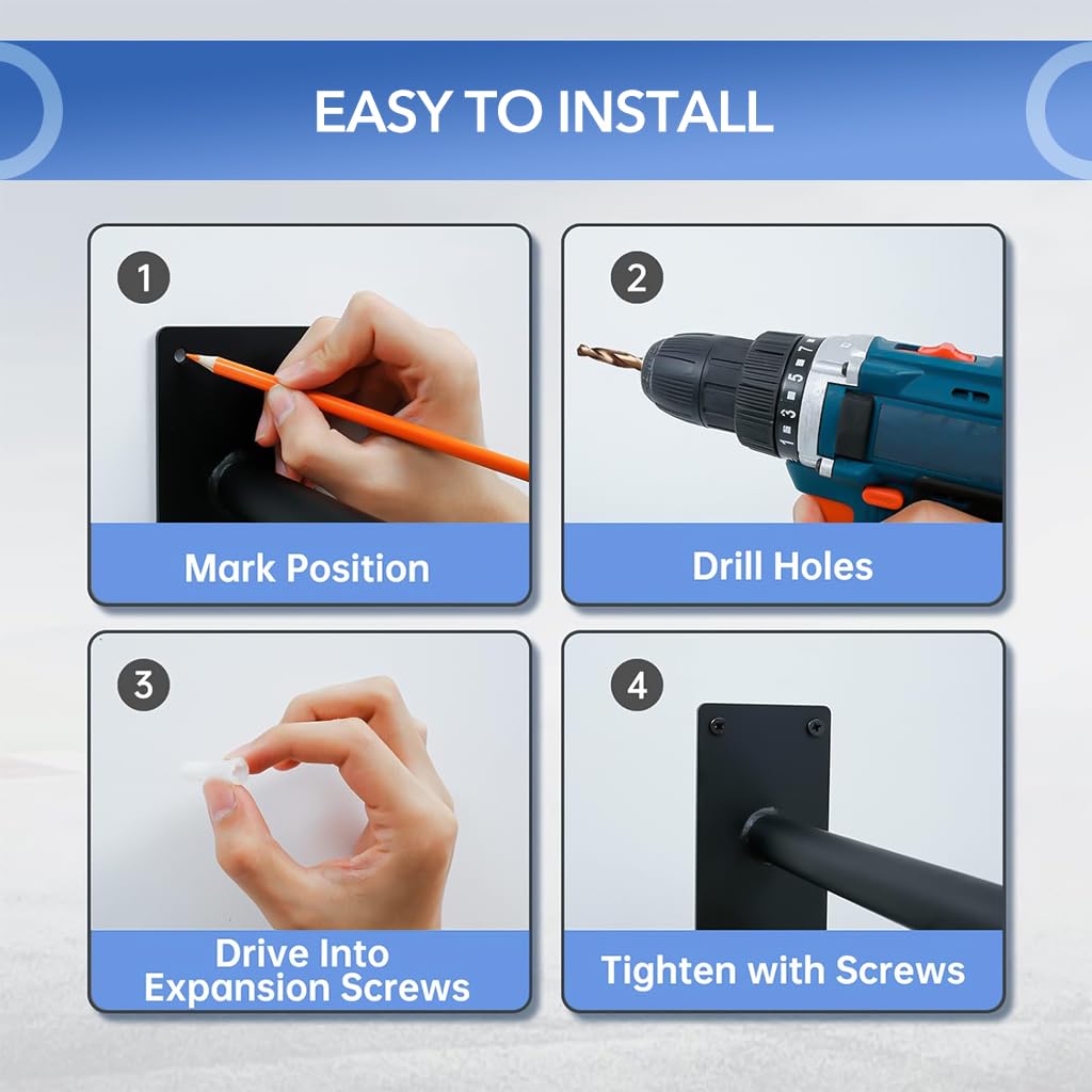 - PREMIUM METAL MATERIAL: Crafted with high-quality metal material and a fine finishing, this wall mounted grab bar safety rod ensures durability, longevity, and an aesthetically pleasing appearance. The sleek and professional design blends seamlessly with any décor, making it a versatile addition to any residential or commercial setting.