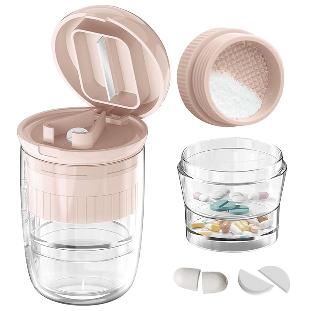 - Includes a built-in pill cutter with a V-shaped holder for accurate and stable splitting.