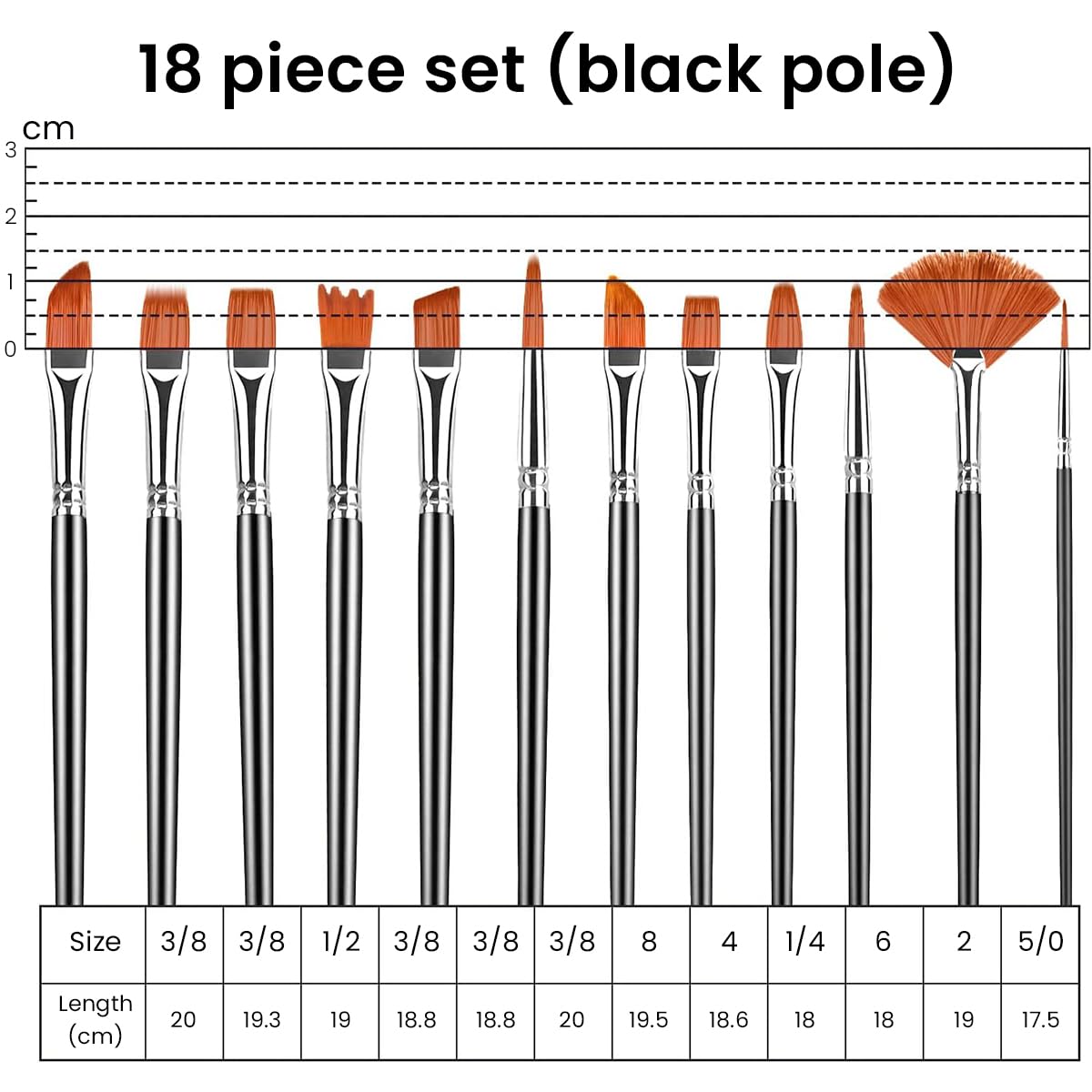 - EASY TO CLEAN: Easier to wash in warm soapy water and reshape the paintbrush tips. Our nylon paint brushes won't deteriorate as quickly. And the brush hair stays soft after each cleaning. Nice selection for beginners and professionals. Keep them clean and they last a long time. Brush overall length: 6.65"-8.02".