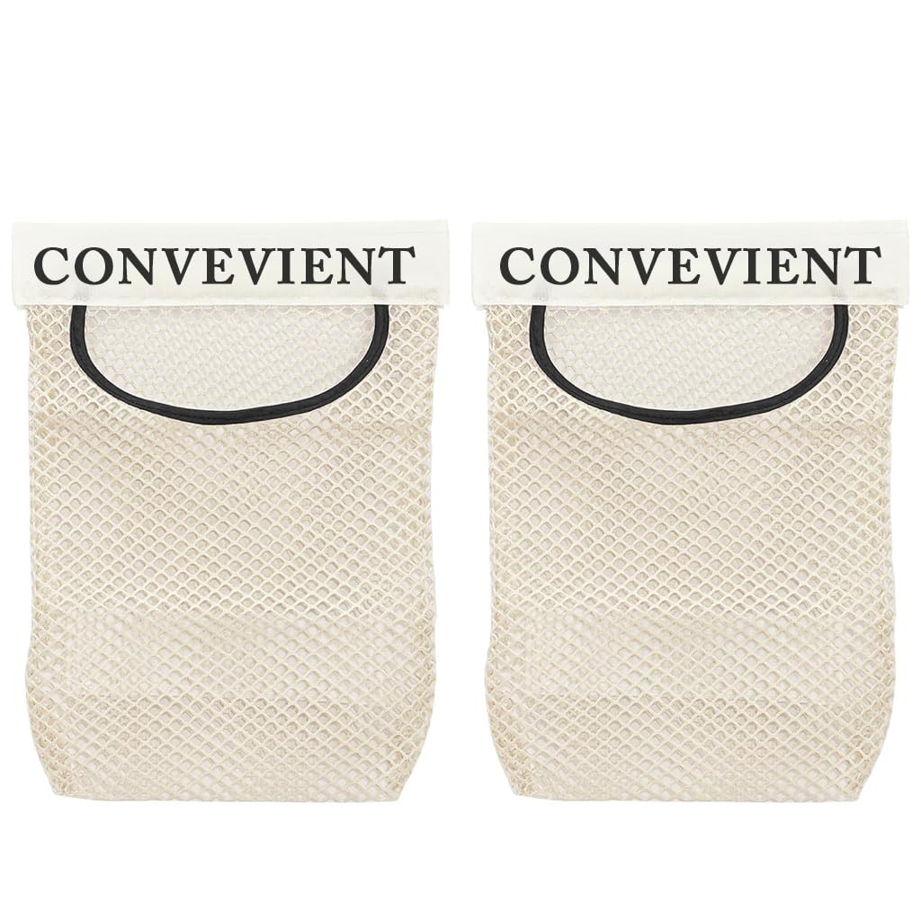 HASTHIP 2 Pack Trash Bag Holder Dispenser Sticky Wall Mount Mesh Convenient Storage Organizer is designed to keep household spaces neat and efficient with breathable mesh construction that provides visibility and airflow. Made from durable, reusable material, it allows quick access to plastic bags, produce, or cloth alternatives while minimizing odors and moisture. This versatile kitchen storage mesh bag adapts easily for use in the kitchen, bathroom, or pantry, storing items from towels to toys. Its self-adhesive wall mount ensures secure, drill-free installation on any flat surface. With two detachable, washable bags, HASTHIP offers an eco-conscious and practical organizing solution for everyday use.