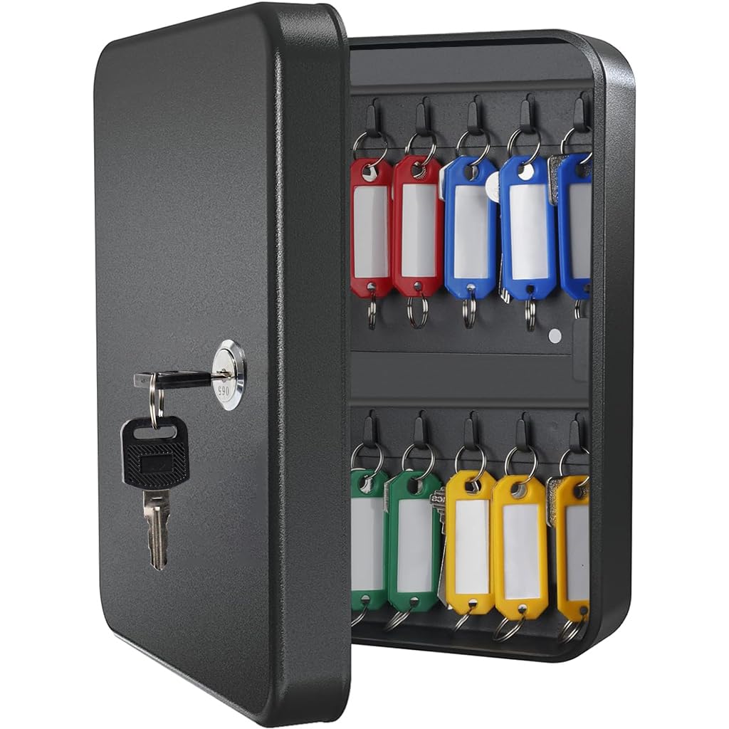 - HASTHIP 20-Keys Steel Key Cabinet with 2 Unlocking Keys, Wall Mounted Key Organizer Black Frosted Security Box with Hooks and Large Key Tag Labels HASTHIP 20-Keys Steel Key Cabinet with 2 Unlocking Keys, Wall Mounted Key Organizer Black Frosted Security Box with Hooks and Large Key Tag Labels