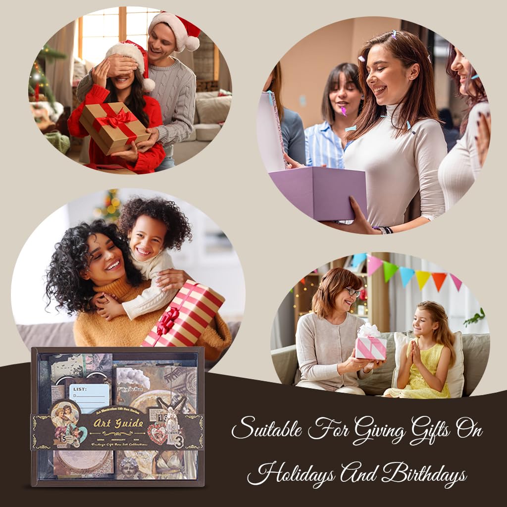 - GIFT BOX: These scrapbook kit designed for junk journaling enthusiasts & beginners, you can use it to celebrate travel adventures, childhood firsts and share the happiness. Vintage pattern will help you retain or revive beautiful memories. Great for art crafts, planner, journal/scrapbooking lovers, students, beginner to make thoughtful gifts for Birthday, Graduation, Valentine's Day, Halloween, Thanksgiving, Christmas and New Year. Perfect gift for your friends and family!