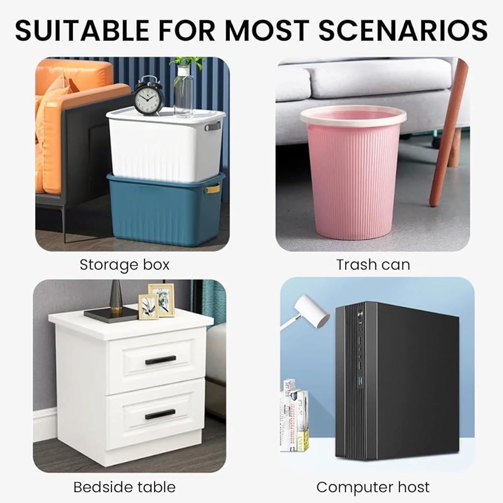 - VERSATILE APPLICATIONS: Make moving easier! Whether you need to relocate a printer, small appliances, storage boxes, mop buckets, or nightstands, these adhesive casters have you covered. Ideal for underbed storage, toolboxes, and air purifiers, they offer up to 22 pounds of support with four wheels. For heavier items, add more wheels for increased capacity. Enhance your mobility solutions today!
