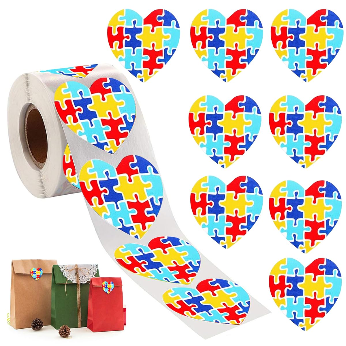 HASTHIP Autism Stickers for Awareness Gifts featuring 500 Heart Shaped Self Adhesive Labels