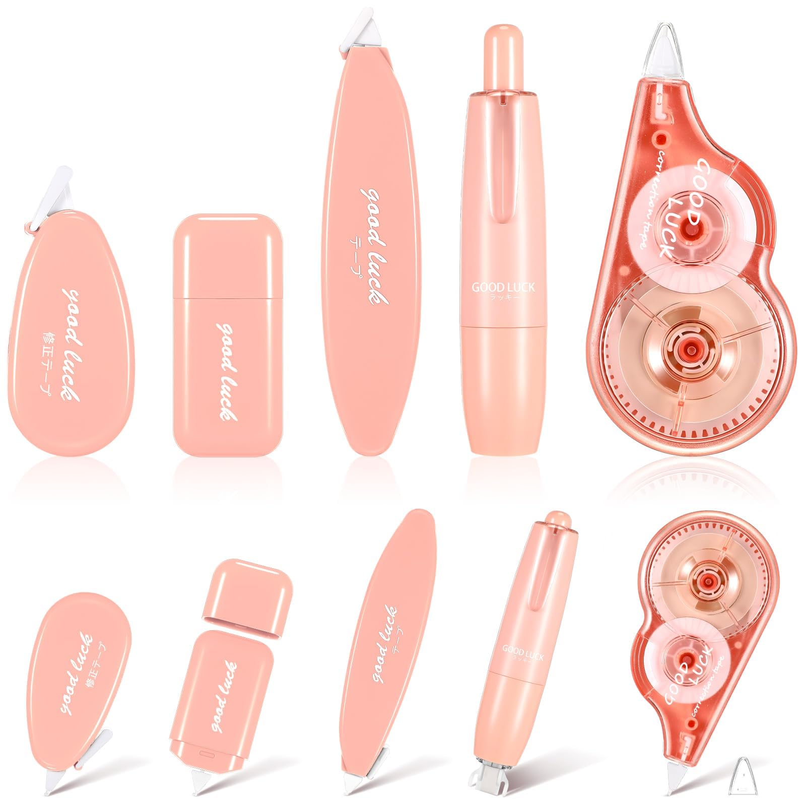 HASTHIP Correction Tapes Kit offers a set of six 6m x 5mm diverse rollers designed for precise and smooth writing corrections. The HASTHIP 6Pcs Correction Tapes Kit includes various roller types, such as regular models, a pen-sized retractable version, and tapes with protective lids, allowing clean modifications on handwritten or printed work. Each tape provides instant correction with excellent coverage and no drying time. Crafted from premium, durable materials, these tools glide effortlessly across paper and feature an ergonomic shape for comfortable, prolonged use. With a vibrant pink design, this correction tape kit combines style and practicality, making it ideal for students, teachers, and professionals who value neat, professional presentations.