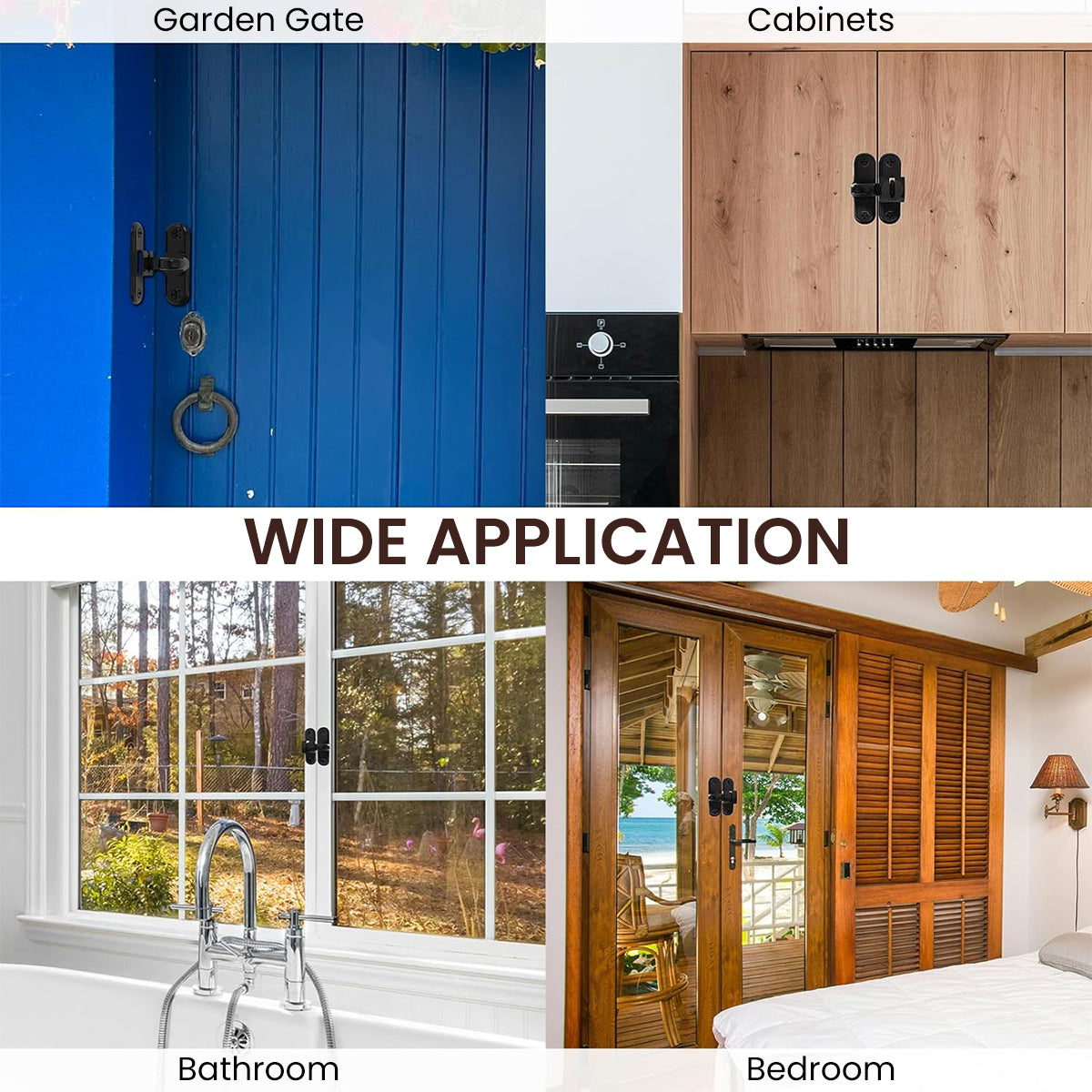 - MULTI-PURPOSE DOOR LATCH: This door latch lock is ideal for enhancing security across various applications, including gates, doors, closets, and cabinets. Its universal design fits seamlessly into diverse environments, blending practicality with functionality.