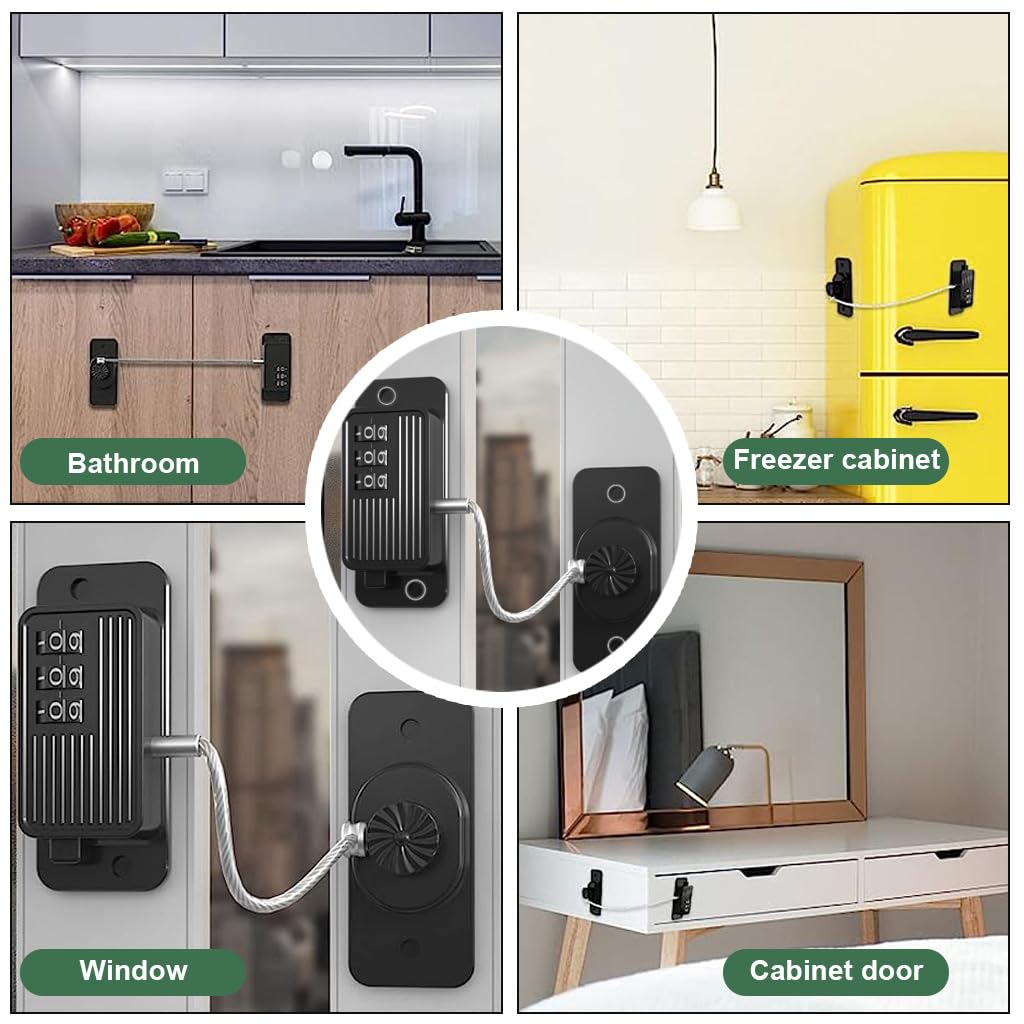 - HASTHIP Door Lock for Kids' Safety, Fridge Lock with Password, Nail-Free Password Chain Lock, Multifunctional Cabinet Locks for Refrigerator, Cabinets and Drawers, Closets, Windows, Doors (Black) HASTHIP Door Lock for Kids' Safety, Fridge Lock with Password, Nail-Free Password Chain Lock, Multifunctional Cabinet Locks for Refrigerator, Cabinets and Drawers, Closets, Windows, Doors (Black)