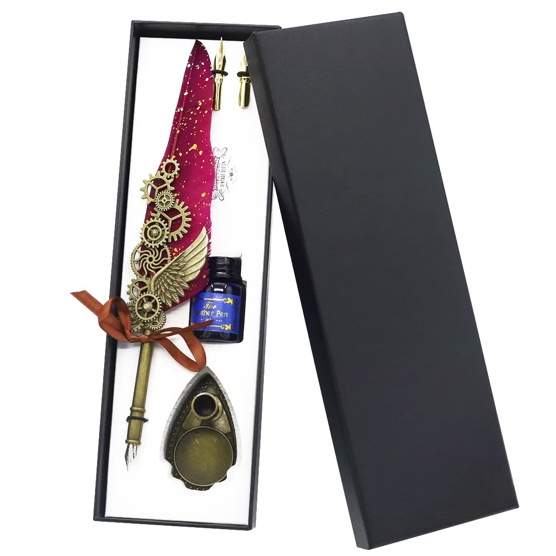 - HASTHIP Feather Pen and Blue Ink Set, Mechanic Style Quill Calligraphy Pen with Ink, 2 Replacement Nibs and Pen Holder, Vintage Signature Fountain Pen Dip Pen Gift Set (Red) HASTHIP Feather Pen and Blue Ink Set, Mechanic Style Quill Calligraphy Pen with Ink, 2 Replacement Nibs and Pen Holder, Vintage Signature Fountain Pen Dip Pen Gift Set (Red)
