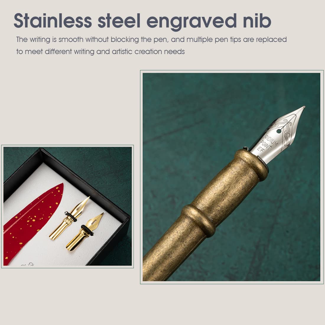 - VINTAGE QUILL PEN SET: The Set contains: a Steampunk Quill Pen, 2 Replaceable Pen Nibs for Different Line Weights, a Pen Holder, and 1*20ml Bottle of Black or Blue Ink.