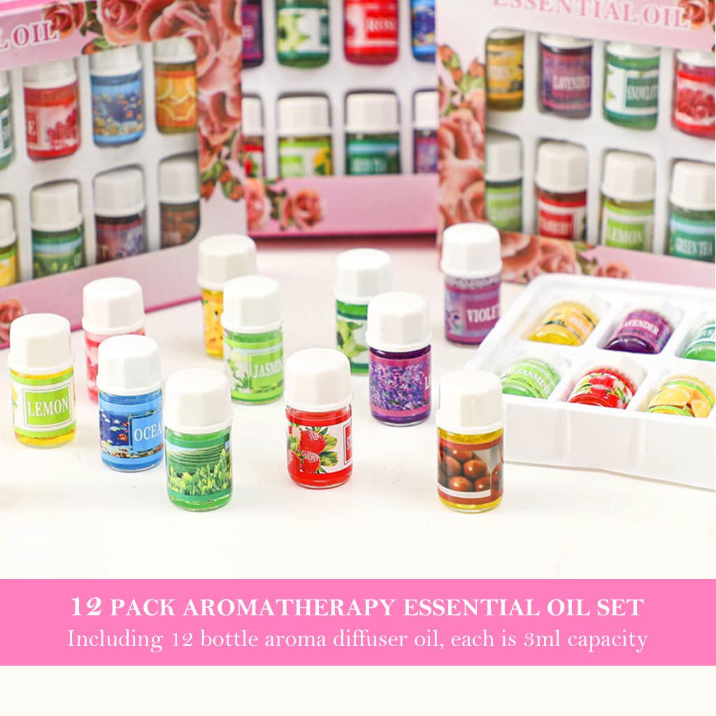 - 12 PACK AROMATHERAPY ESSENTIAL OIL SET: Including 12 bottle aroma diffuser oil, each is 3ml capacity. Each with its own unique aroma for air purifying.