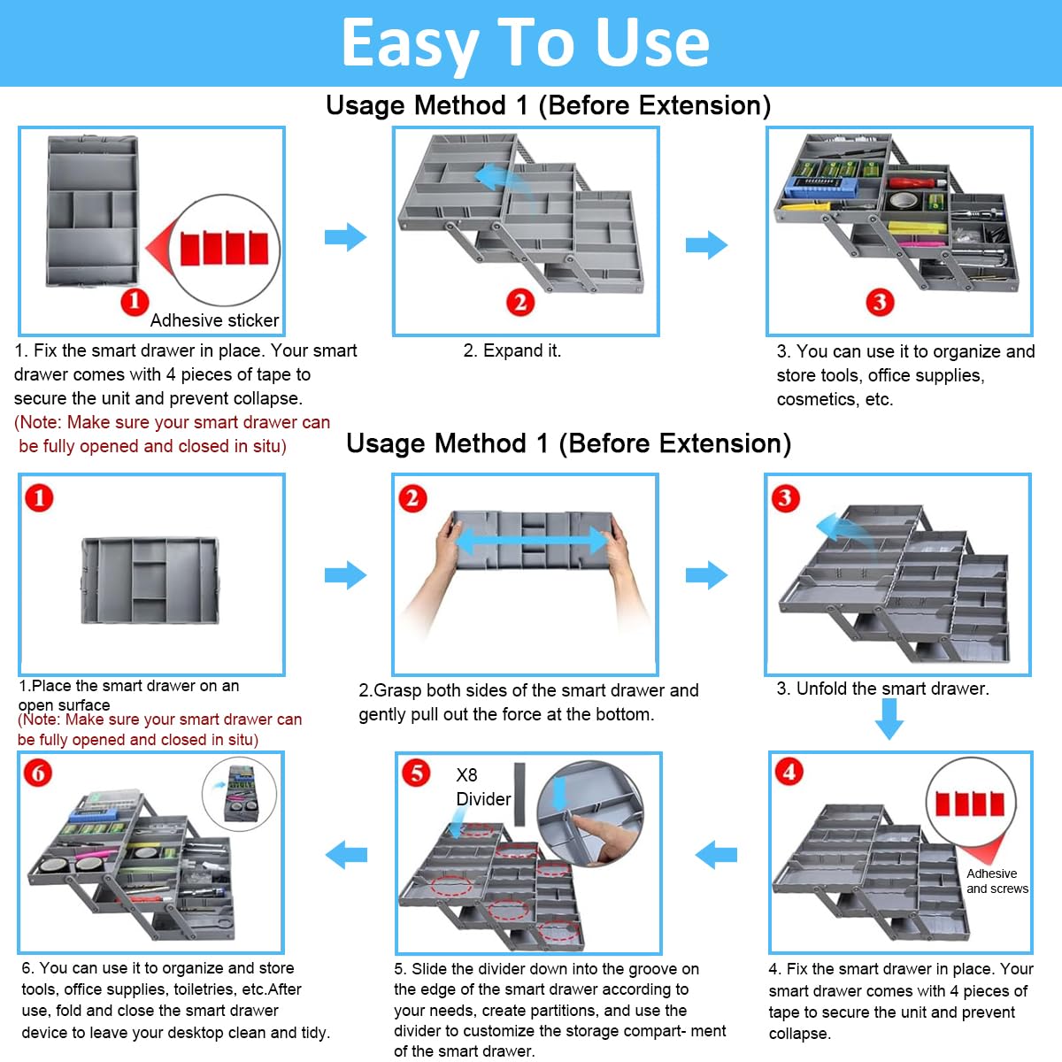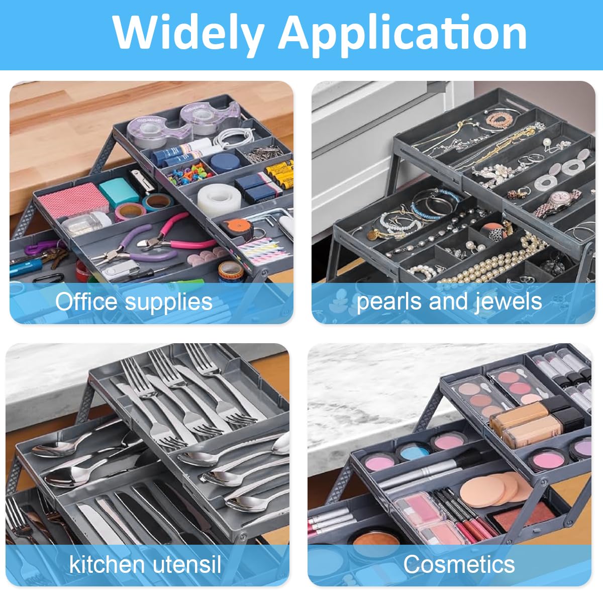 - MULTI-COMPARTMENT FLEXIBILITY: With multiple compartments of various sizes, this utility organizer offers unparalleled customization. Whether you're storing small screws, delicate necklaces, or kitchen gadgets, each item can have its designated spot, making quick and hassle-free fetching .
