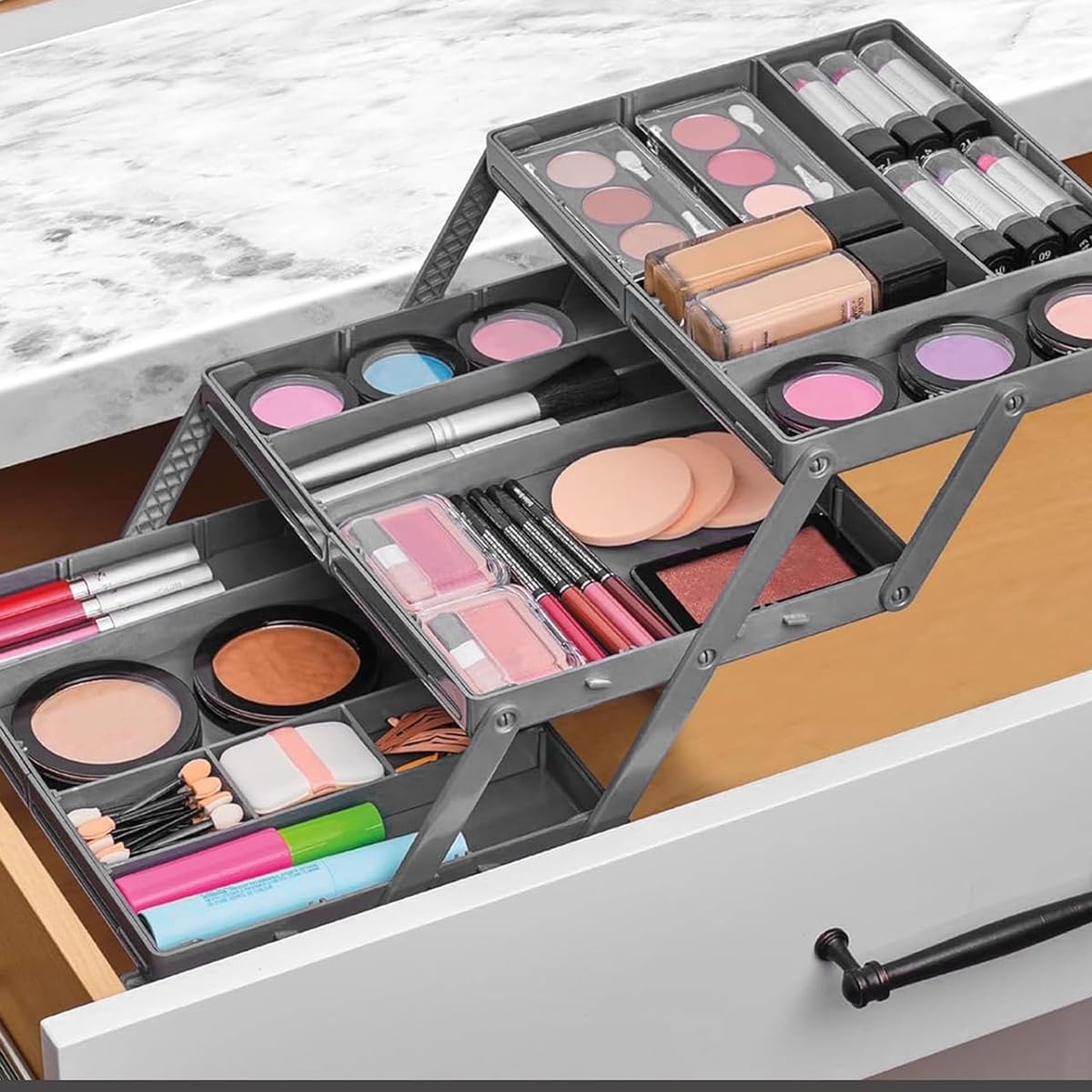 - EASY ACCESSIBILITY: Each tier of the organizer can be effortlessly accessed, thanks to its user-friendly design. Whether you're reaching for items on the top shelf or the bottom, the intuitive layout ensures that everything is within arm's reach, saving you time and effort during your daily routines.