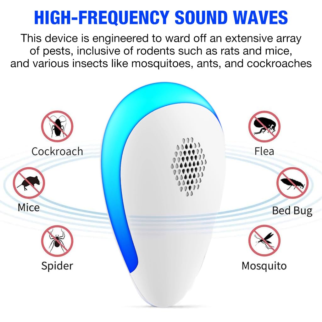 - HIGH-FREQUENCY SOUND WAVES: The ultrasonic pest repeller operates by projecting high-frequency sound waves that are imperceptible to humans but highly discomforting to pests like rodents and insects. At frequencies designed to perturb and repel these unwanted visitors, it delivers a non-intrusive pest control solution, minimizing any disturbance to household members.