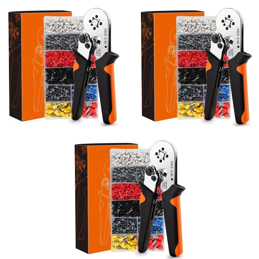 Serplex Wire Crimping Tool Kit offers a complete solution for efficient and accurate electrical connections. This self-adjusting square crimper plier is designed for AWG23–7 wires, including 3600PCS assorted copper ferrule connectors suitable for 0.25–10mm² cables. Its self-adjustable ratchet mechanism ensures precise pressure for reliable crimping, while the quadrilateral crimp profile and brass-plated ferrules provide strong conductivity and durability. The ergonomic handle and compact storage box make organization and use more convenient. Ideal for professionals and hobbyists, Serplex delivers a trusted, high-performance crimping tool that simplifies wiring projects in industrial, automotive, and household applications.