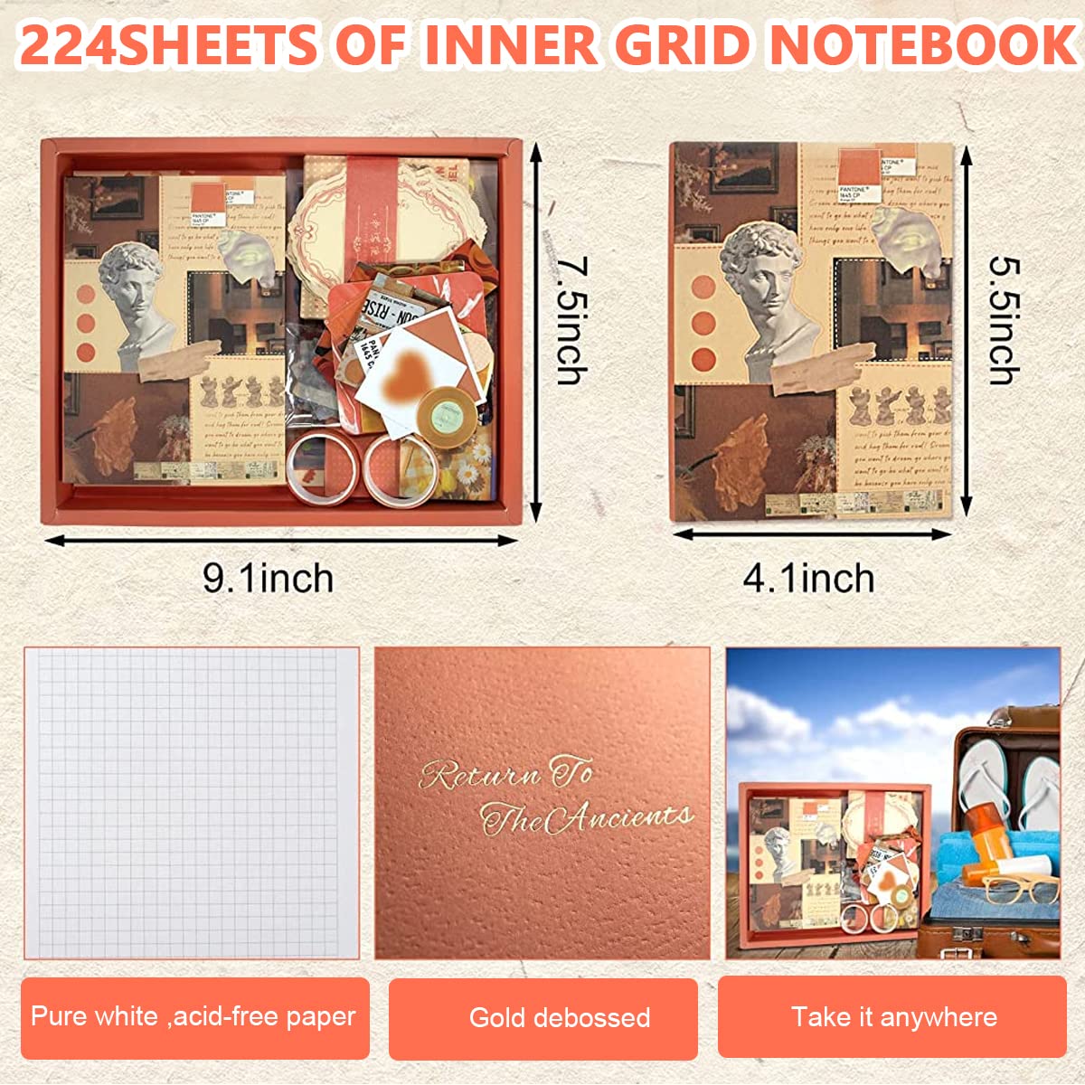 HASTHIP Scrapbook Stickers Supplies Kit, DIY Journal Kit with Journaling/Scrapbooking Aesthetic Kit for Bullet Junk Journals, Art Scrapbook Kit with A6 Notebook, Stickers Craft Kits Album Aesthetic