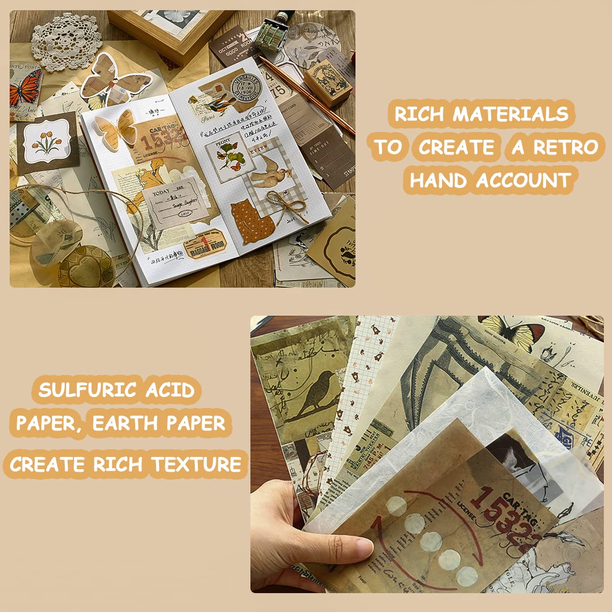 - VINTAGE THEMED STICKER: The stunning vintage stickers is of proper hardness for better decorative effect, making your DIY craft is more of texture. Various retro and classic element pattern, including butterfly, leaves, various beautiful element to complete your scrapbook, not easy to decolor, providing you timeless beauties.