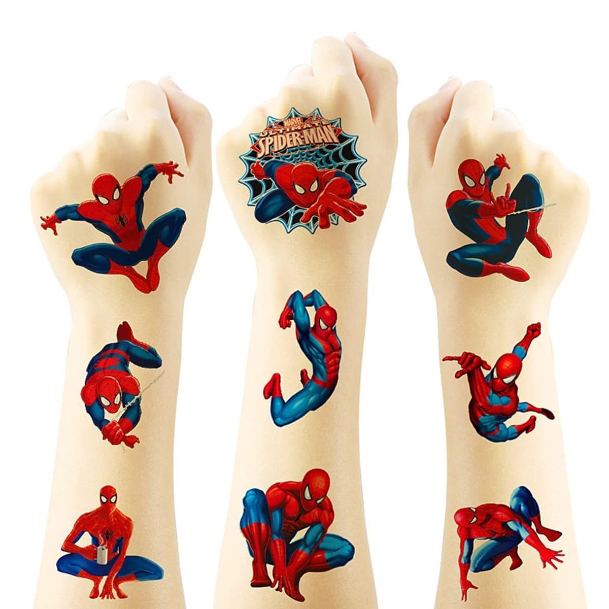 - Spider-themed temporary tattoo stickers inspired by popular superhero designs for kids and teens.