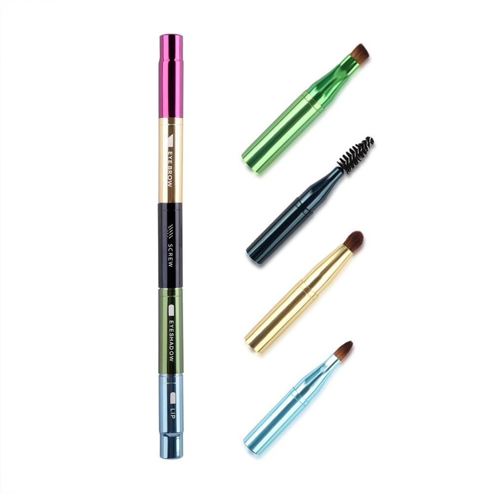 - Features four essential brushes including eyeshadow, eyebrow, screw, and lip brush for complete makeup application.