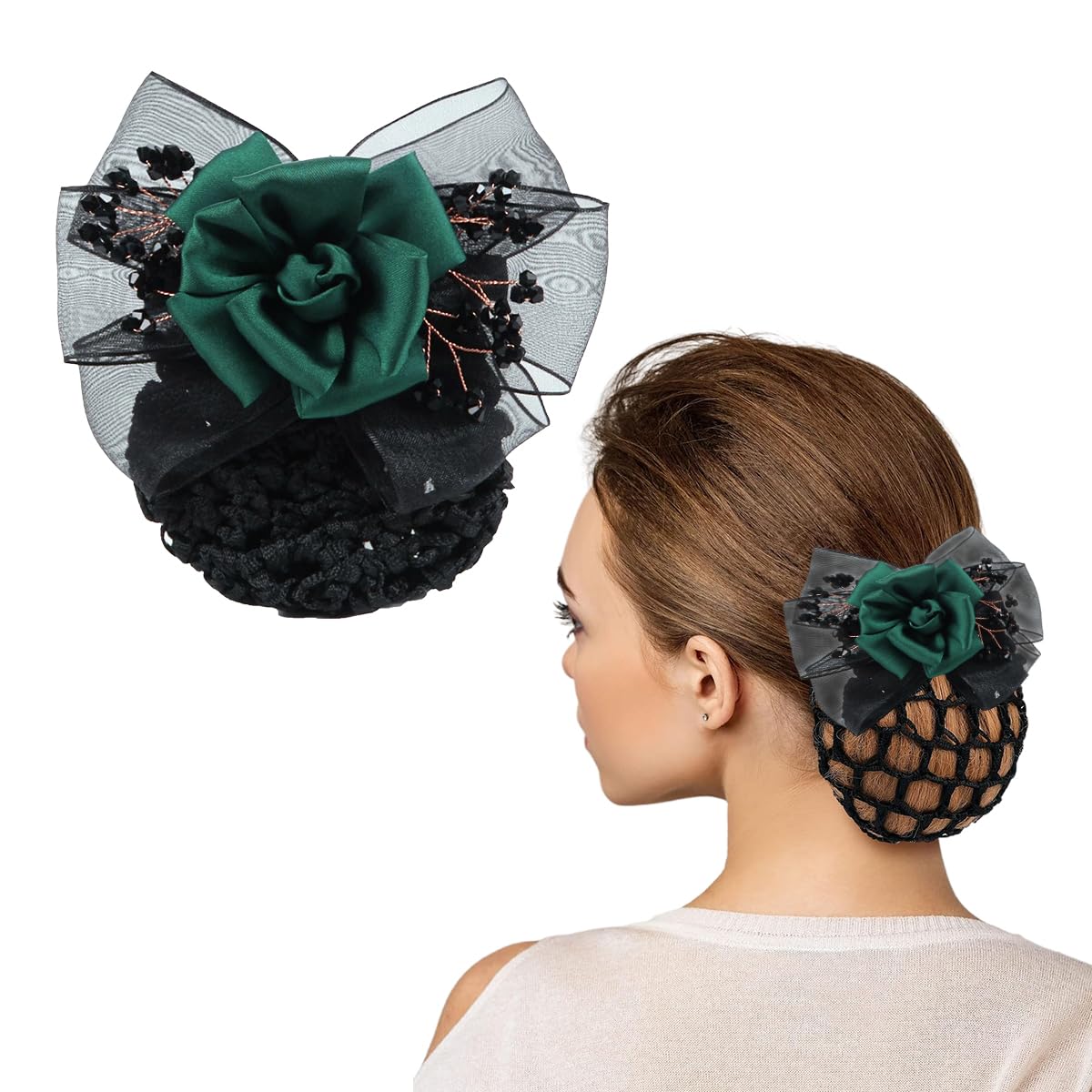 - MAYCREATE Hair Bun Net for Women with Alloy Spring Clip and Green Floral Lace | Ideal for Work or Dance MAYCREATE Hair Bun Net for Women with Alloy Spring Clip and Green Floral Lace | Ideal for Work or Dance
