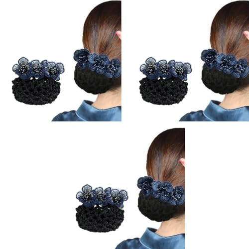 MAYCREATE® Hair Snood Net, Flower Hair Bun Accessories for Women, Clip Hair Net for Women for Bun, Mesh Bun Maker for Hair, Knit Hair Bun Cover Snood Hairnet for Daily, Work, Dancer, Nurse 3 PCS