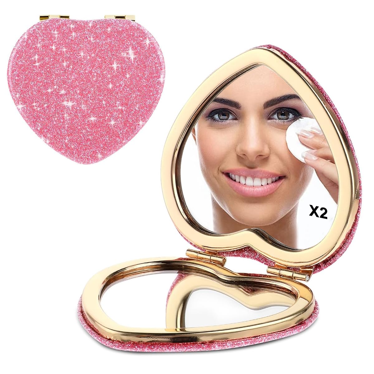 - MAYCREATE Mini Heart Folding Mirror for Travel with Dual Mirrors and Pink Glitter Design | 6.9x7.21cm Compact Makeup Mirror for Women MAYCREATE Mini Heart Folding Mirror for Travel with Dual Mirrors and Pink Glitter Design | 6.9x7.21cm Compact Makeup Mirror for Women