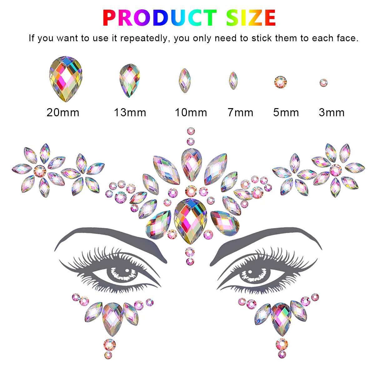 - QUALITY & MATERIAL: Made of rhinestone and acrylic diamond, fine gloss and durable to use. NOTE: This rhinestone face sticker includes small pieces, not suitable for kids under 3 to use alone.