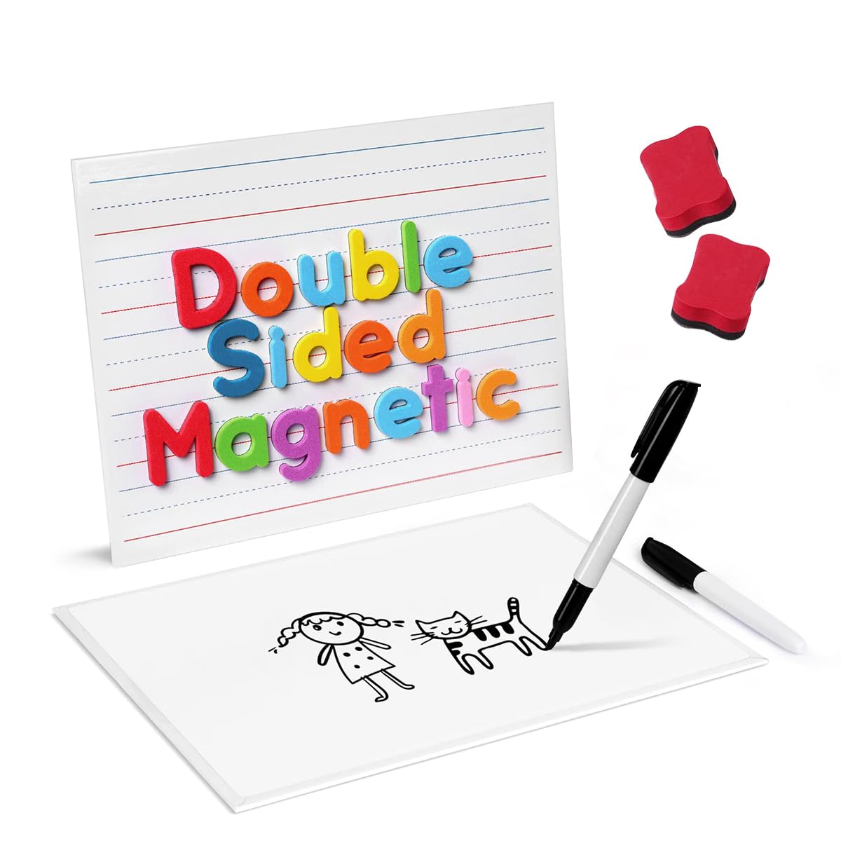 OFIFO® Magnetic Small White Board Cards 2Pcs set features double-sided 30x23cm boards with one lined surface and one blank surface, designed for writing, drawing, and versatile learning activities. Each dry-erase board promotes an interactive learning experience, allowing students to write, erase, and reuse effortlessly for hands-on practice. With a portable yet spacious design, these boards fit easily into bags while providing ample room for notes and illustrations. The set includes a sponge eraser and storage bag for convenient organization and quick cleanup. Ideal for classrooms, home learning, or creative sessions, these OFIFO® whiteboard cards support effective learning and skill development with practical design and dependable usability.