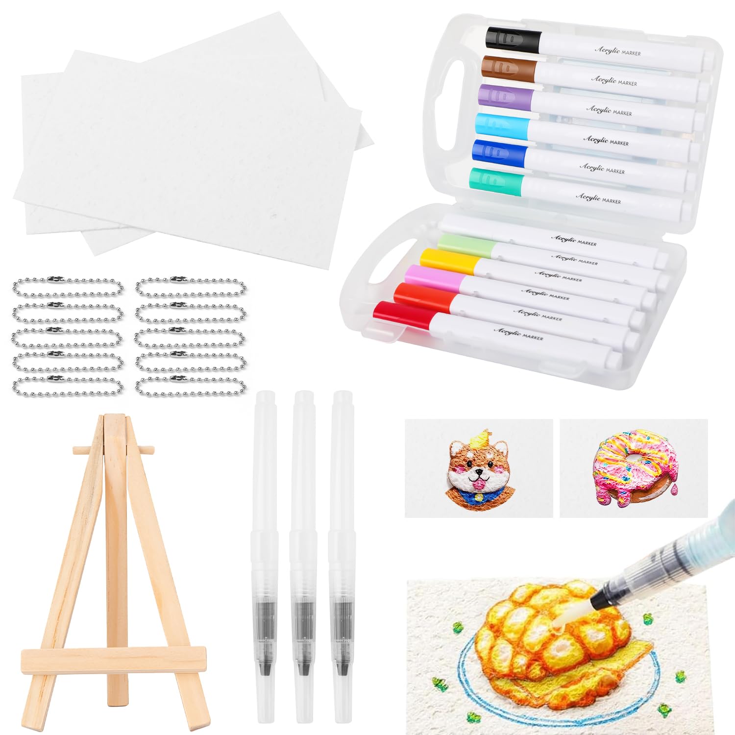 - The kit includes 12 colorful markers, 3 paintbrushes, art papers, a wooden easel, and a bead chain for a complete art experience.