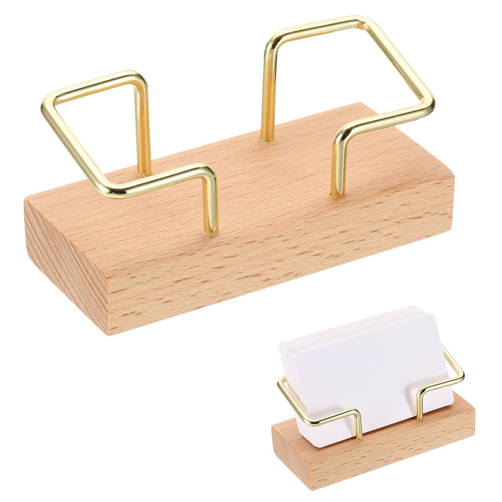 - OFIFO Business Card Holder Stand for Office Desk featuring Golden Wire and Wooden Base | Fits 70 Cards 4.33x1.81x2.05 in OFIFO Business Card Holder Stand for Office Desk featuring Golden Wire and Wooden Base | Fits 70 Cards 4.33x1.81x2.05 in