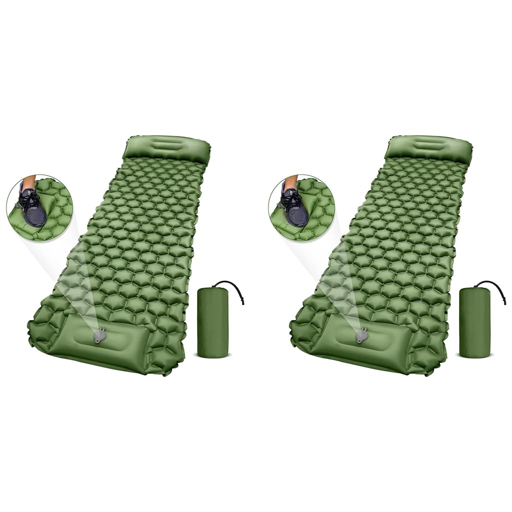 Optifit Air Mattress for Camping with Built in Foot Pump and Waterproof 40D Nylon | Green 2PCS
