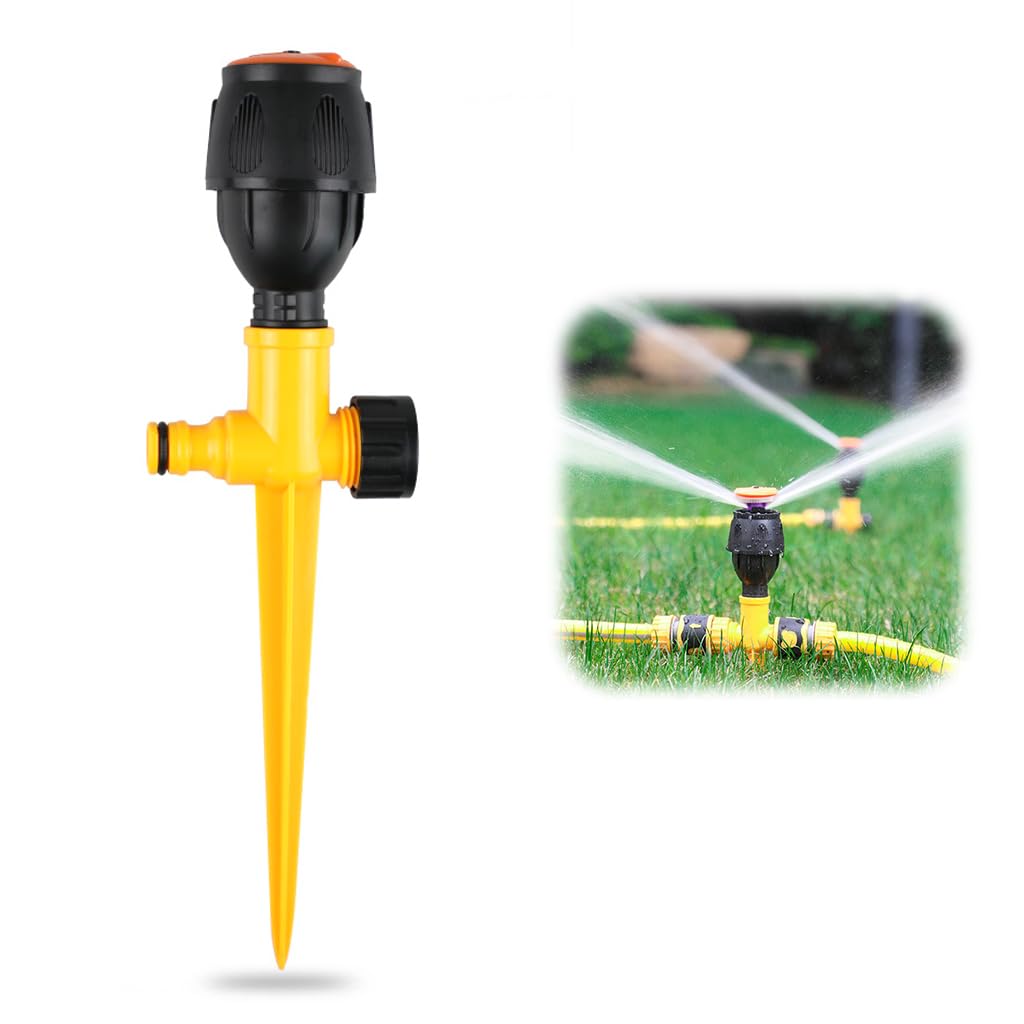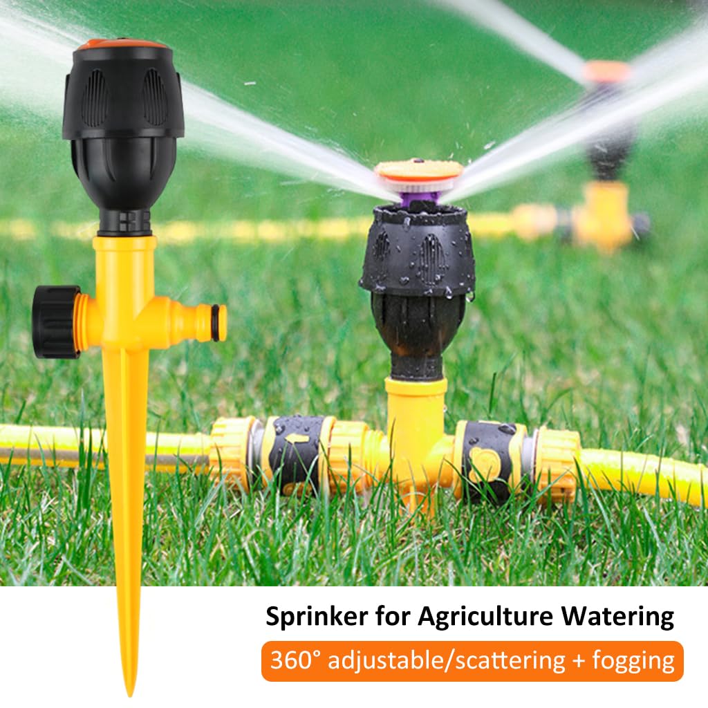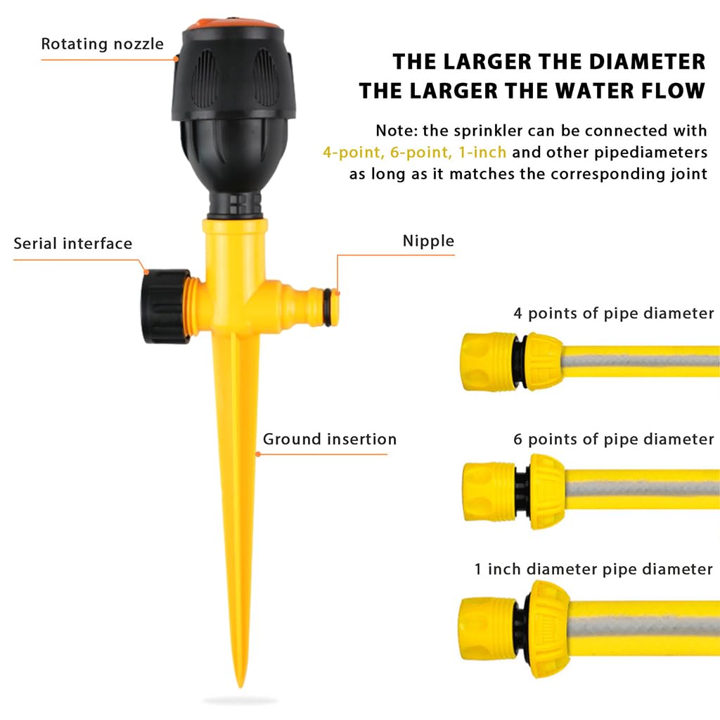 - EASY INSTALLATION: One second installation, just insert the sprinker into ground, pointy tip is easier for you to insert and more stable. Then connecting the water pipe. Including 1pcs, also can with multi sprinkles together for larger irrigation area.