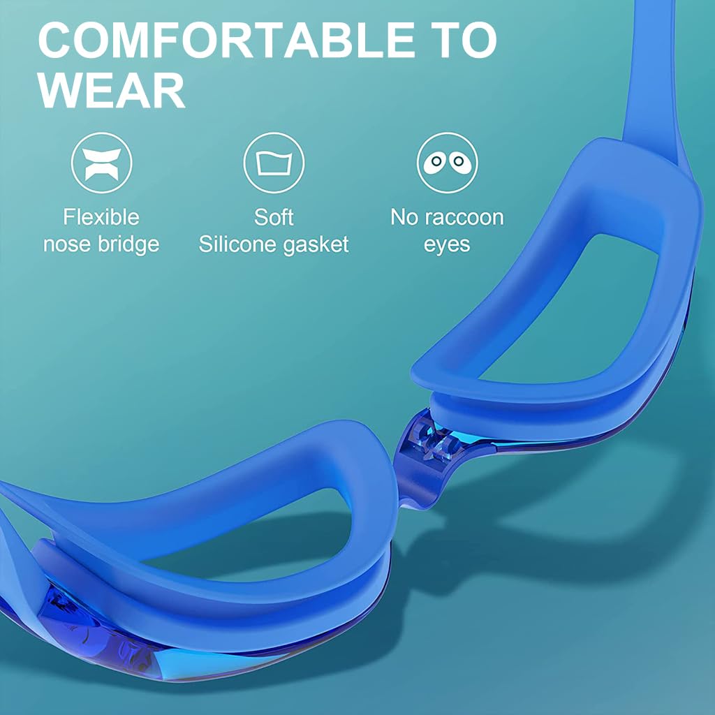 - ANTI-FOG & NO LEAKING: Professional adult swimming goggle is crafted with Polycarbonate lens with anti-fog coating, providing a clear visual under the water for you. Great leakingproof performance is the basic thing for swim goggle, this goggle can not let any water in, protecting your safety in water, let you have a safe and joyful swimming experience.