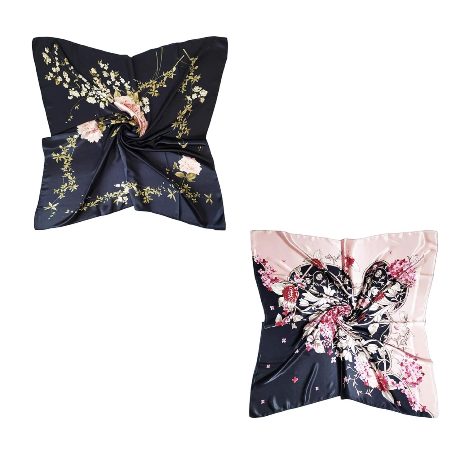 - PALAY Satin Square Scarf for Women featuring 35x35 in & 90x90 cm combo | Navy Blue and Pink Silk Like Hair Accessory PALAY Satin Square Scarf for Women featuring 35x35 in & 90x90 cm combo | Navy Blue and Pink Silk Like Hair Accessory