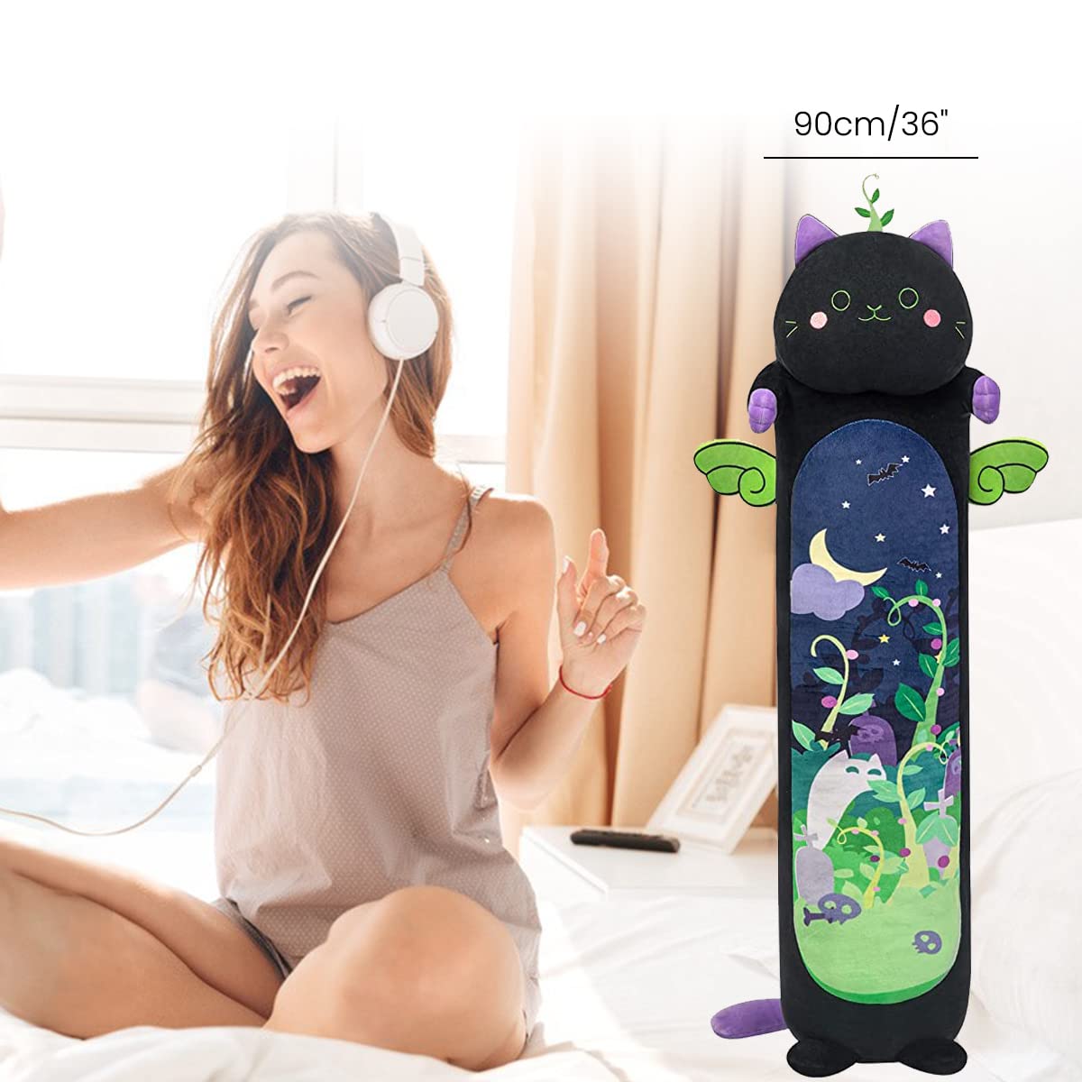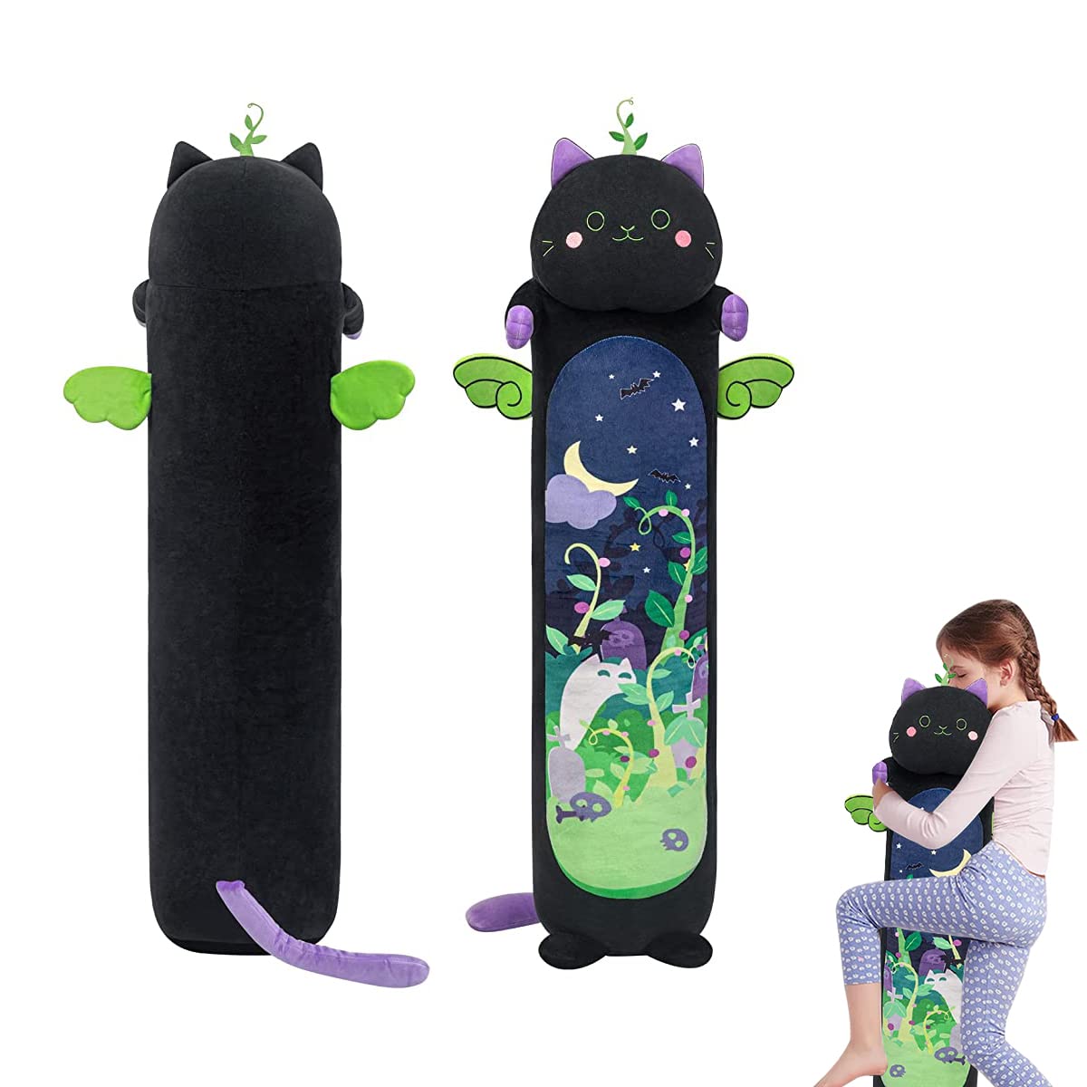 - CUTE CARTOON KITTEN PLUSH LONG PILLOW: Super cute cartoon kitten plush long pillow on bed or sofa, which is designed as a cute cat soft toy with adorable details and prints. This cat cuddle pillow have little tails and wings, creating warm and lovely atmosphere for the room.
