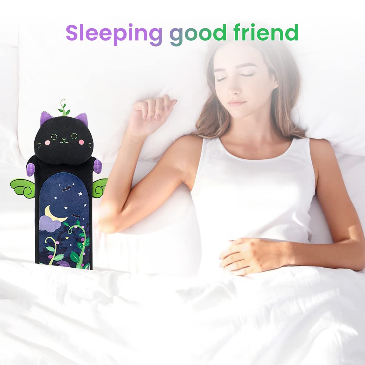 - LONG PILLOW ON SOFA: This long cat plush pillow is also a good accompany on couch. This anime body pillow can be a neck pillow, lumbar support, you can cuddle it in arm when watching TV, movie or reading. You can lean on it anytime and anywhere for comfort.