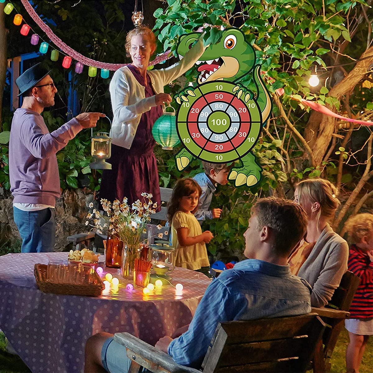 - IDEAL GIFT FOR KIDS AND FUN OUTDOOR ACTIVITIES: The dinosaur toy dart board is an ideal gift for children of 2-5 years old. The game is an outdoor-friendly activity toy that brings excitement and entertainment to their playtime. The dart game for kids is perfect for family get-together, camping trips, picnics, and more.