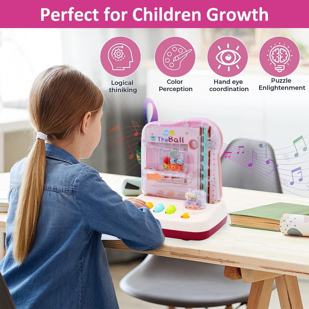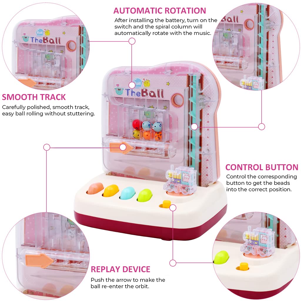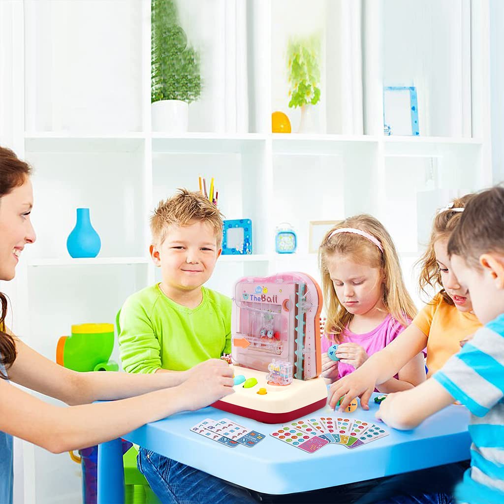 - STIMULATE KIDS BRAIN DEVELOPMENT: Upgrade and challenging new educational toy for kids combines classic mathmatic game and puzzle toy for kids, kids can control the handles and buttons on the rolling ball toy machine to make the color balls matching the game cards or complete simple addition calculation on the game cards.