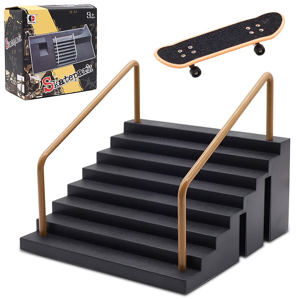- PATPAT Fingerboard Rail Park Stair Kit for Tabletop Tricks with Handrails and Mini Skateboard | 5.6x5.6x2.76 in Black Toy for Kids 9+ PATPAT Fingerboard Rail Park Stair Kit for Tabletop Tricks with Handrails and Mini Skateboard | 5.6x5.6x2.76 in Black Toy for Kids 9+