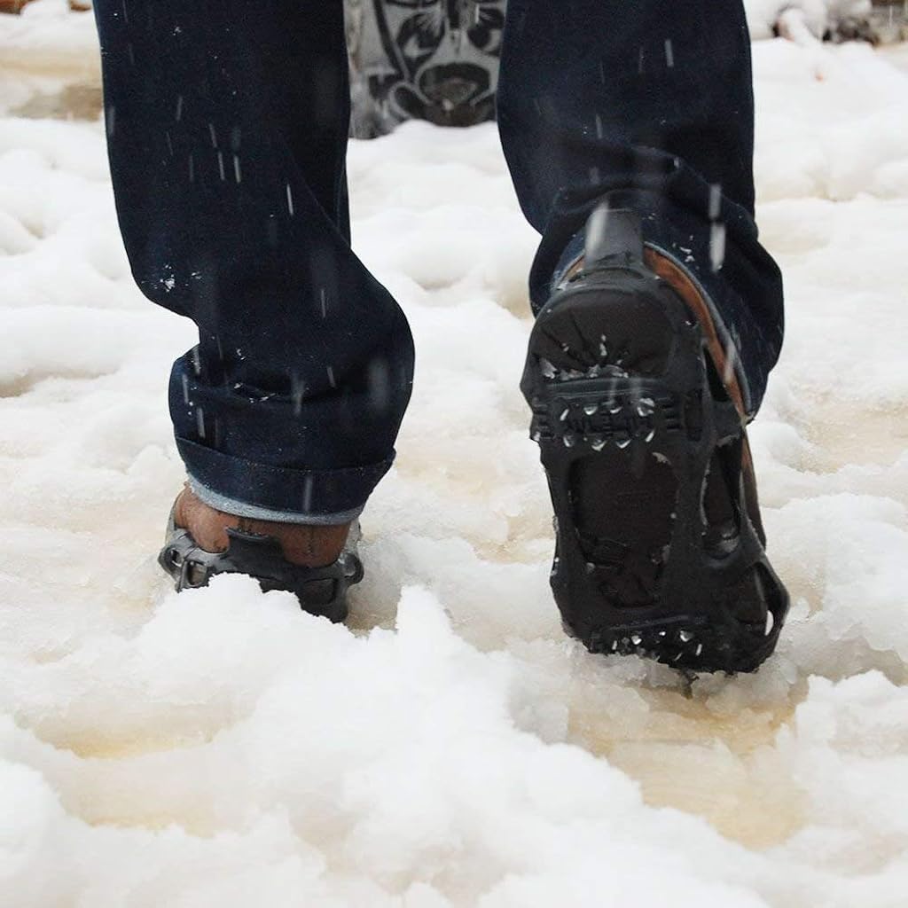 - ULTRA STRONG TRACTION DESIGN: Experience unrivaled grip with 24 high-performance manganese steel spikes. These robust spikes provide superior traction on icy and snowy surfaces, ensuring maximum stability. Walk confidently in wet and slippery sidewalks, knowing that each step is securely anchored, drastically reducing the risk of slips and falls.